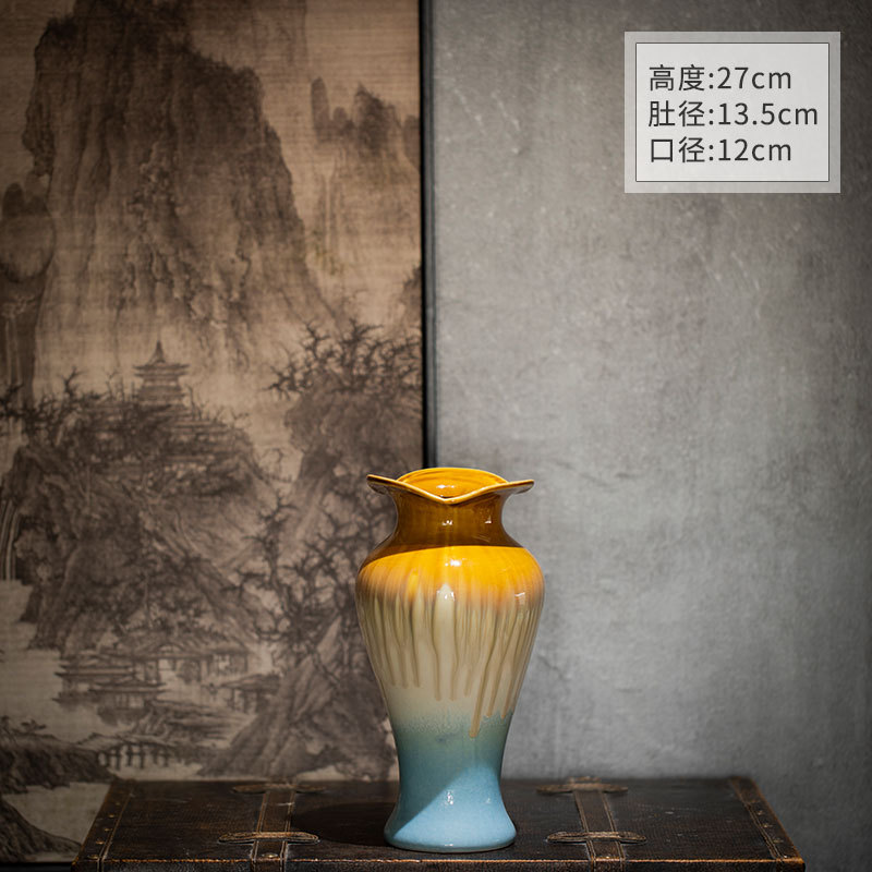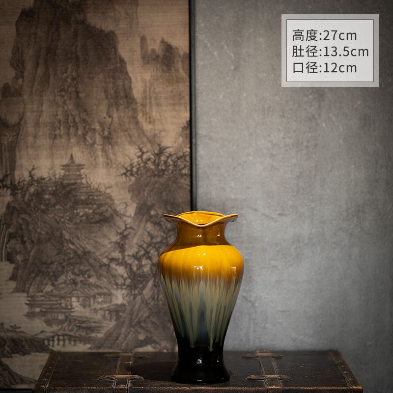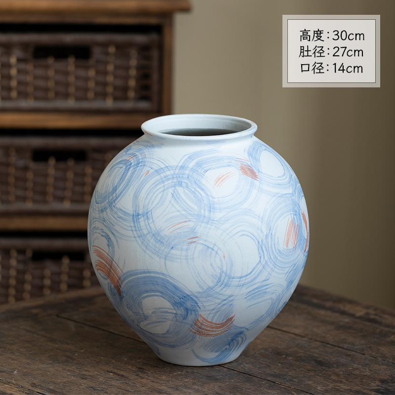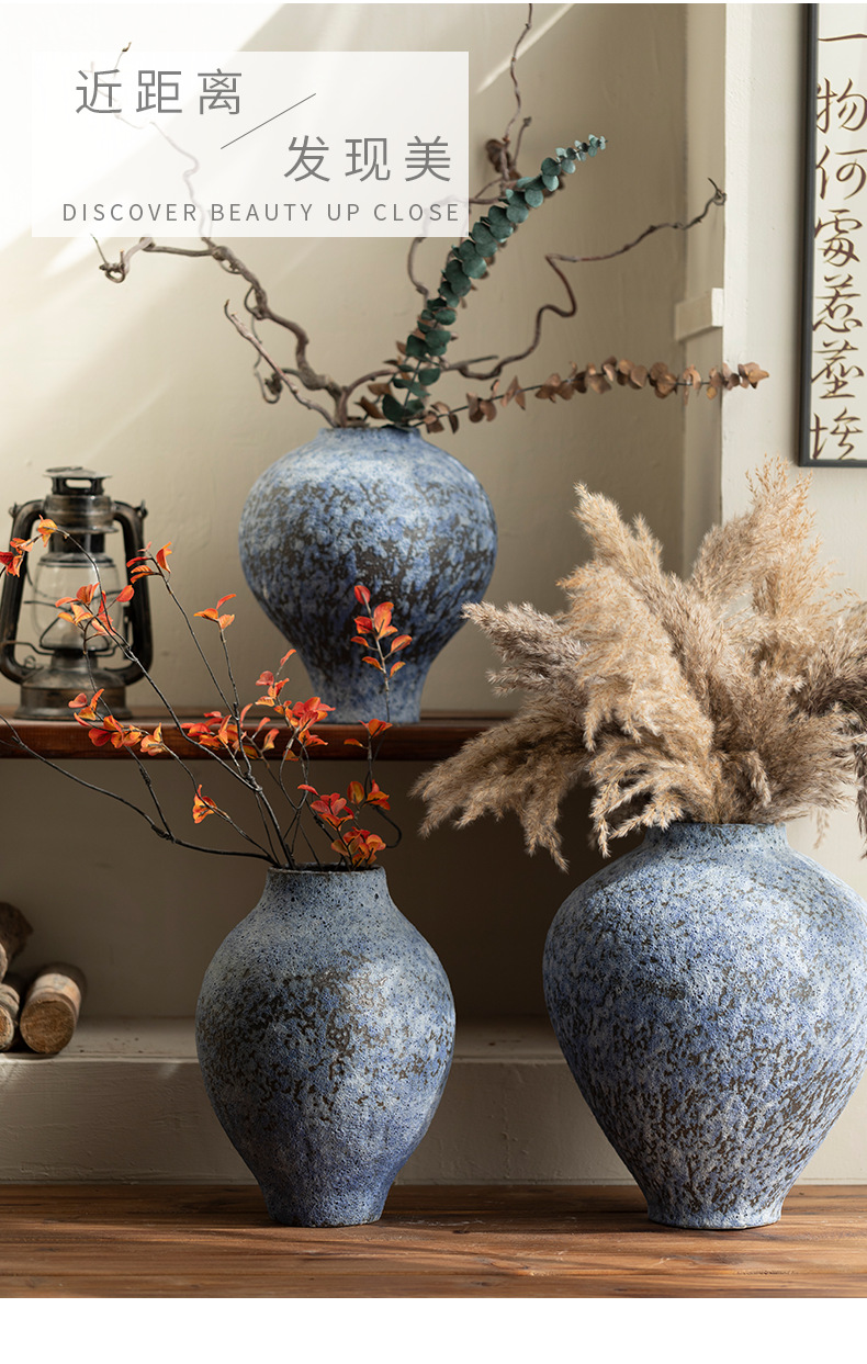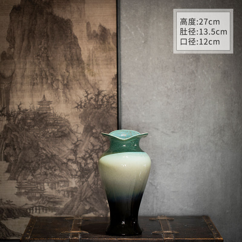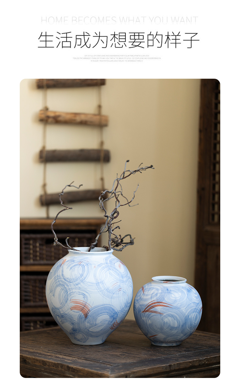 [신제품 맛 신선한] 징데젠 빈티지 세라믹 꽃병 꽃 냄비 꽃 장식품 거실 홈스테이 입구 장식품