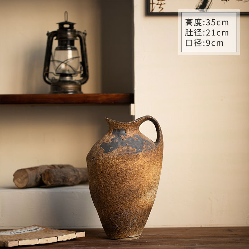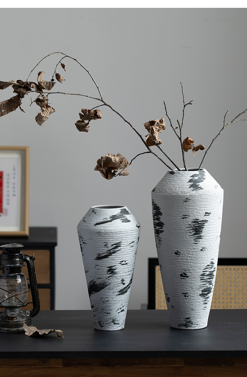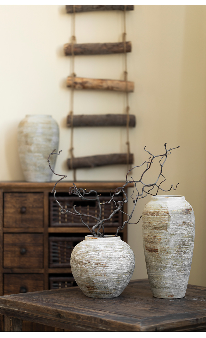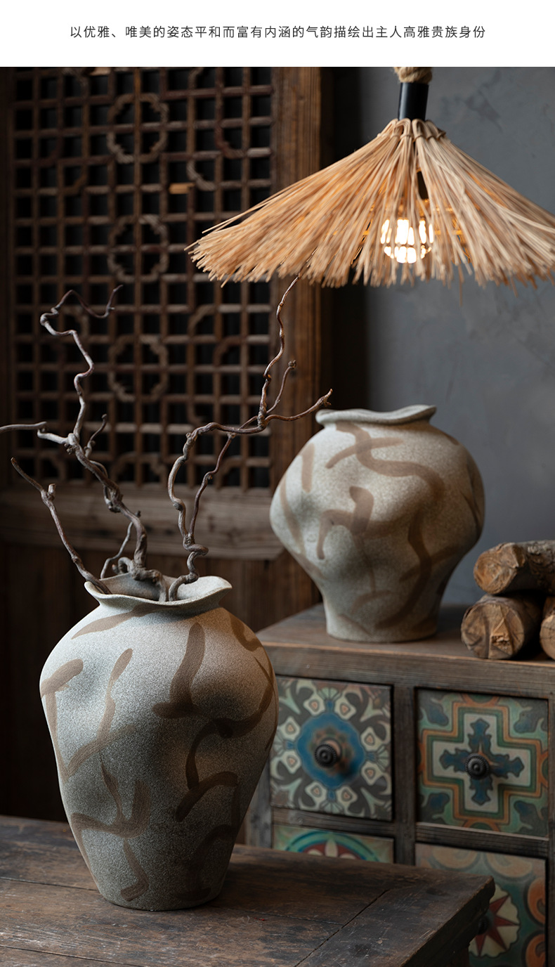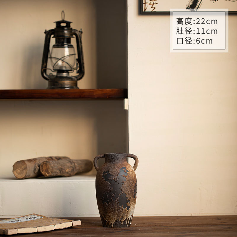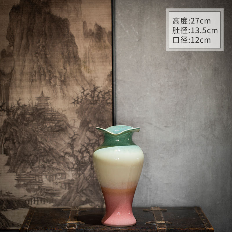 [신제품 맛 신선한] 징데젠 빈티지 세라믹 꽃병 꽃 냄비 꽃 장식품 거실 홈스테이 입구 장식품