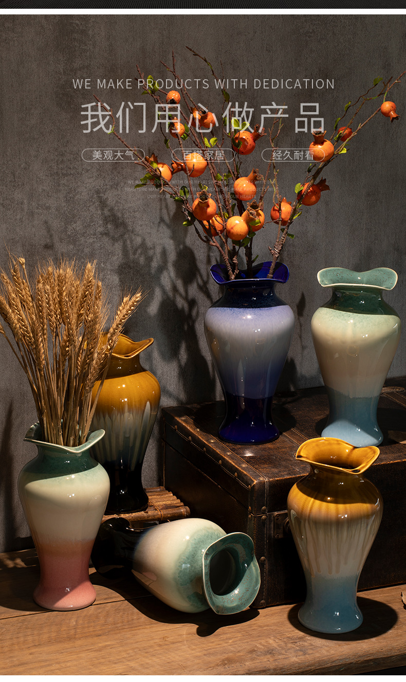 [신제품 맛 신선한] 징데젠 빈티지 세라믹 꽃병 꽃 냄비 꽃 장식품 거실 홈스테이 입구 장식품스토어 가기