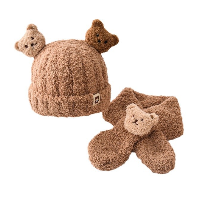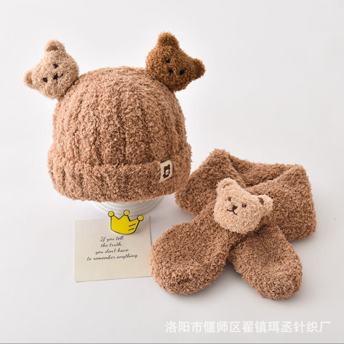 곰 봉제 아기 모자 가을과 겨울 아기 모자 스카프 원피스 투피스 어린이 슈퍼 귀여운 따뜻한 귀 보호 캡