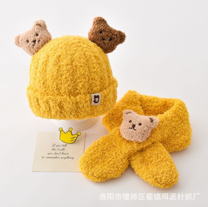 곰 봉제 아기 모자 가을과 겨울 아기 모자 스카프 원피스 투피스 어린이 슈퍼 귀여운 따뜻한 귀 보호 캡스토어 가기