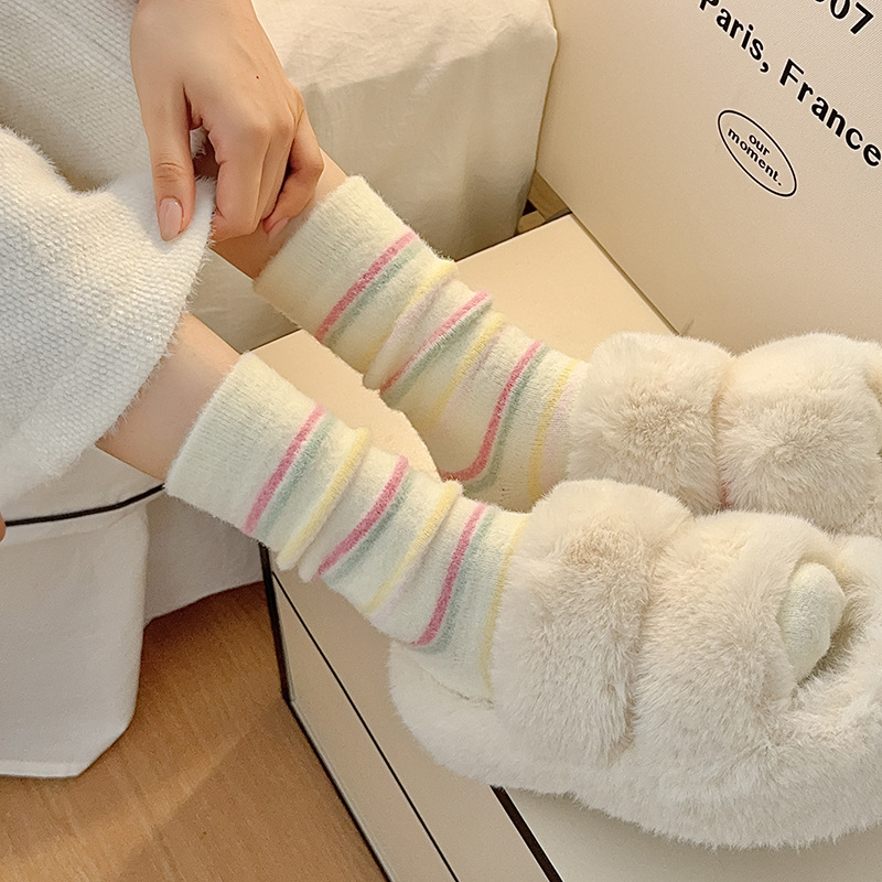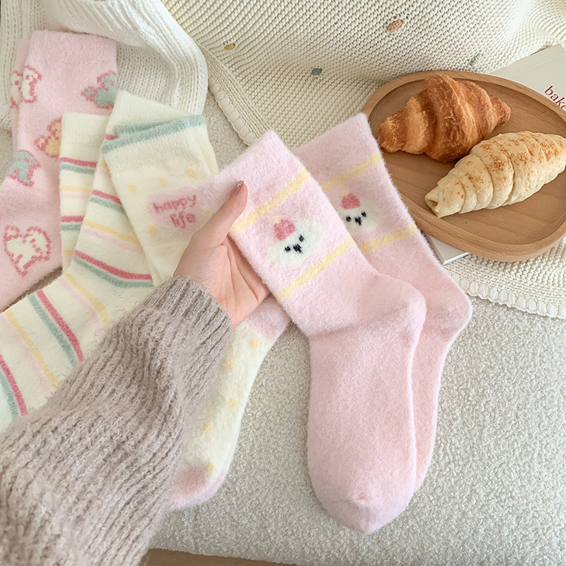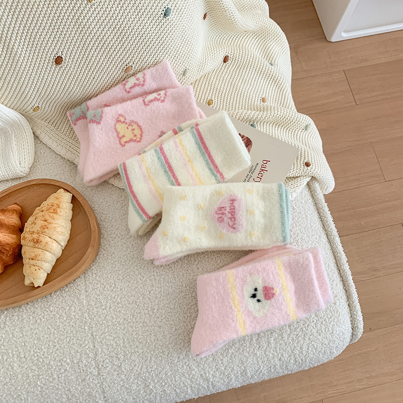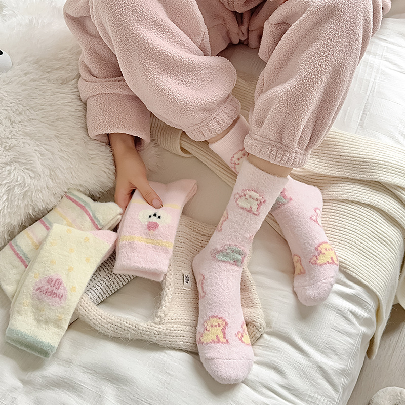 핑크 강아지 귀여운 오리 양말 여성 미드 튜브 양말 가을과 겨울 두꺼운 따뜻한 한국 스타일 만화 봉제 달 양말