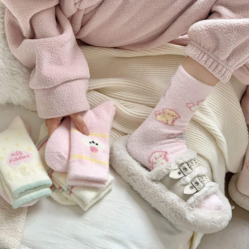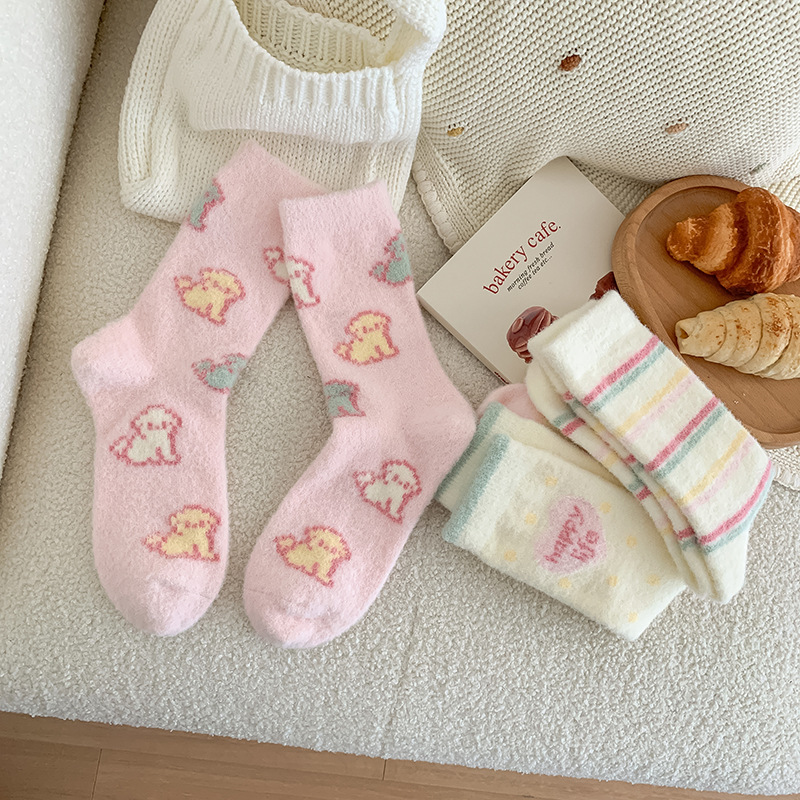 핑크 강아지 귀여운 오리 양말 여성 미드 튜브 양말 가을과 겨울 두꺼운 따뜻한 한국 스타일 만화 봉제 달 양말스토어 가기