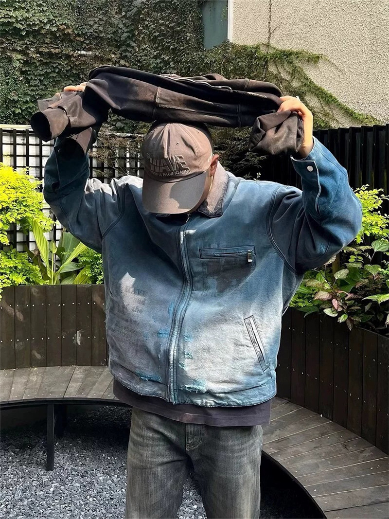 24ss 가을 하이 스트리트 ERD 무거운 디트로이트 라셀 캔버스 편안한 느슨한 데님 재킷스토어 가기
