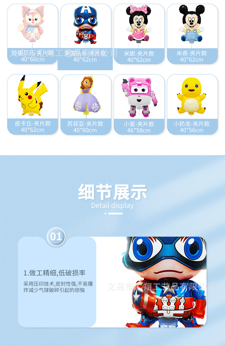 대형 클립 풍선 알루미늄 드래그 로드 핸드 헬드 산리오 귀여운 만화 어린이 장난감 야시장 포장 도매