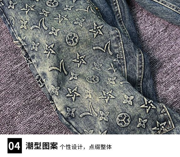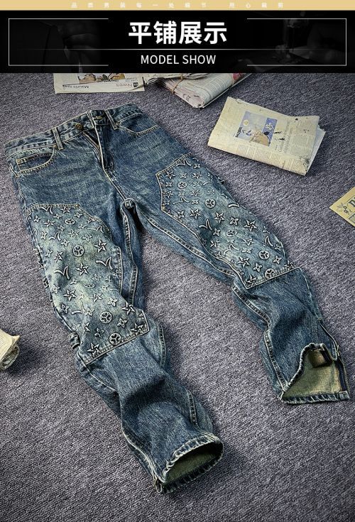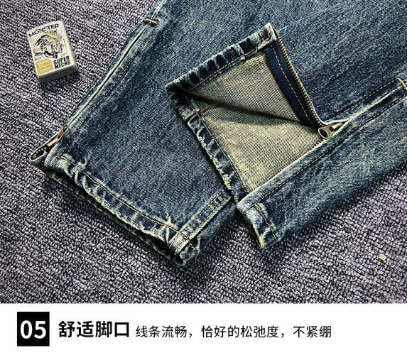 가을 2024 새로운 청바지 남성용 아메리칸 스타일 레트로 트렌디 브랜드 양각 오래 된 스트레이트 느슨한 원숭이 스티칭 탄성스토어 가기