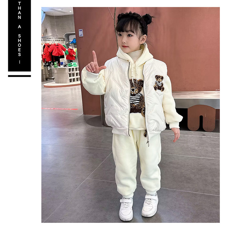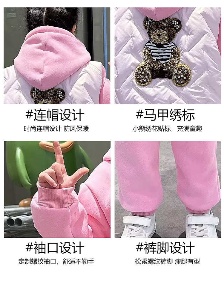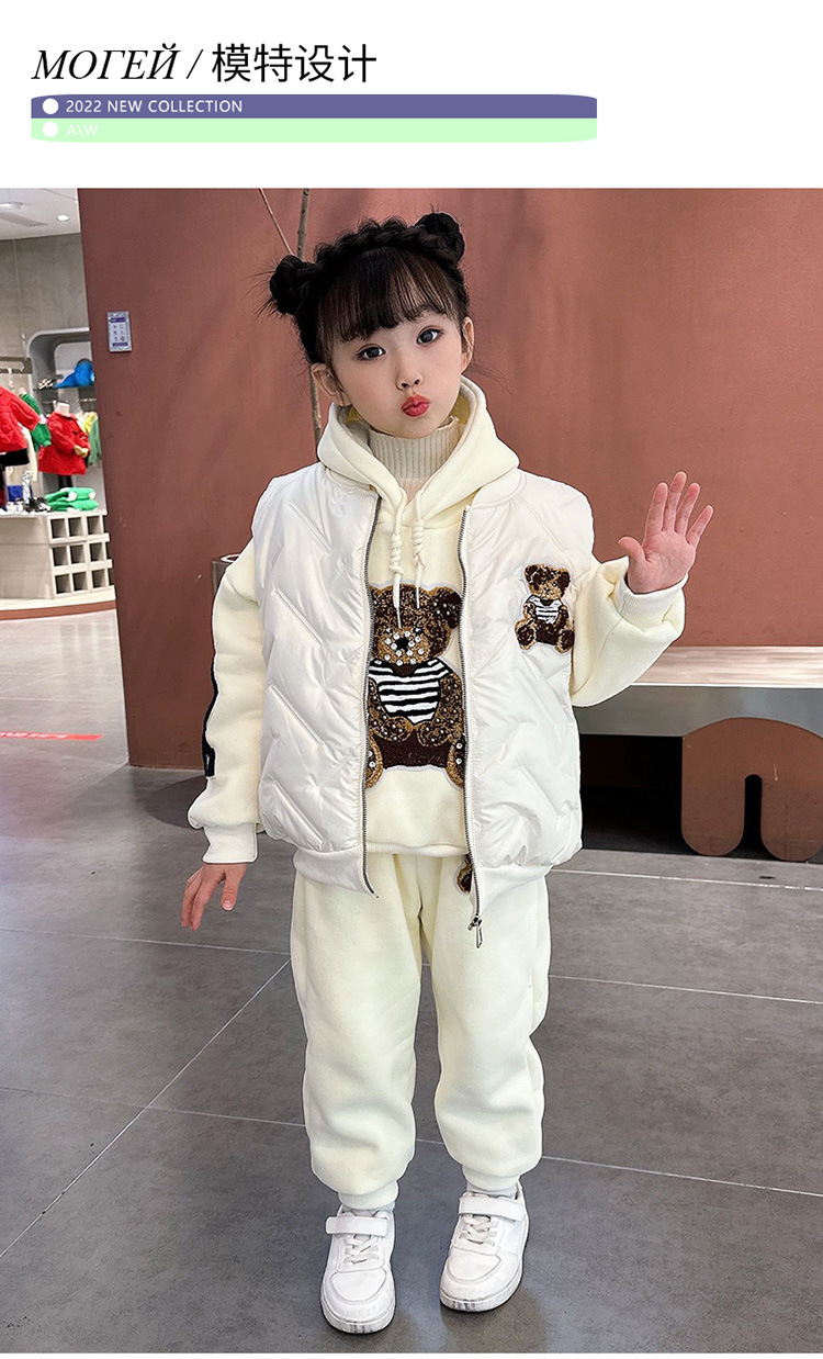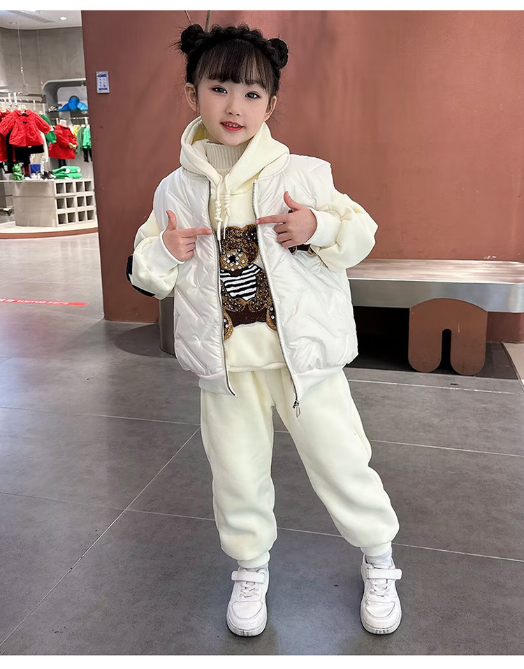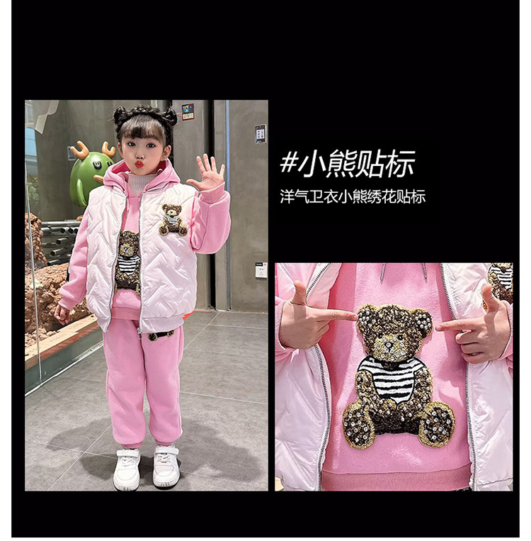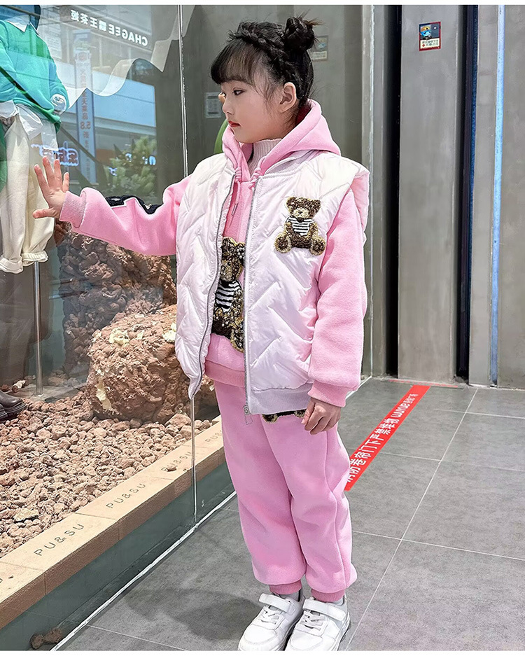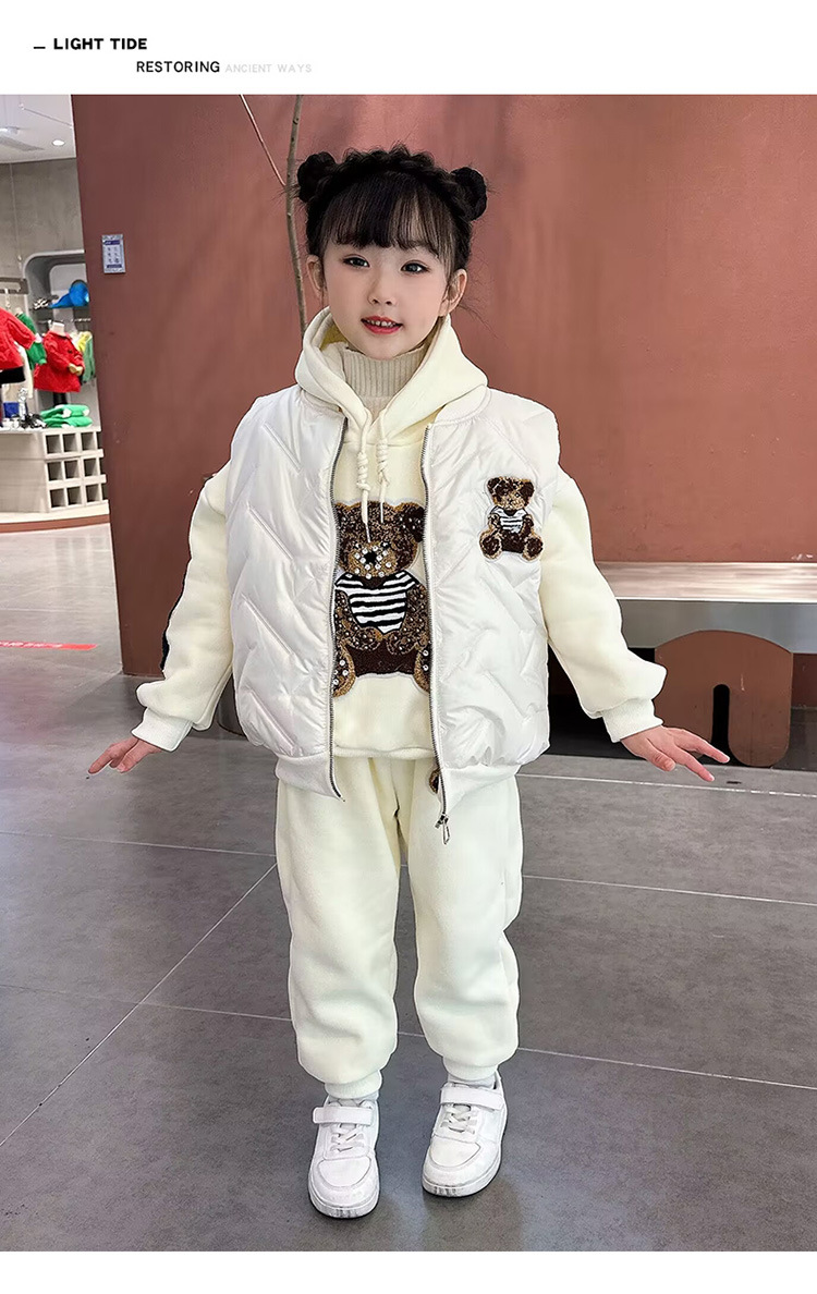 소녀 벨벳 가을 겨울 세트 2024 새로운 어린이 유행 두꺼운 겨울 큰 어린이 조끼 3 조각 세트스토어 가기