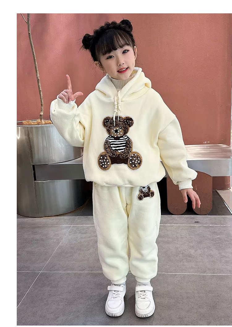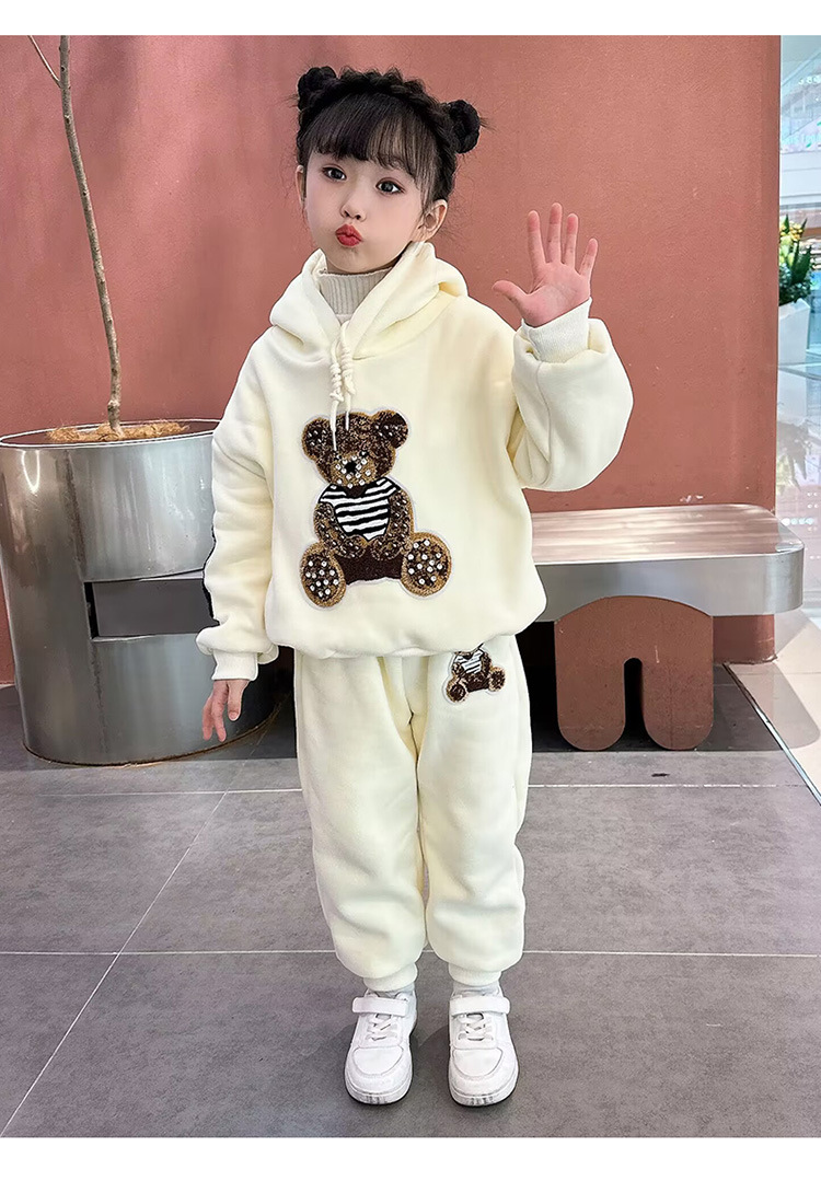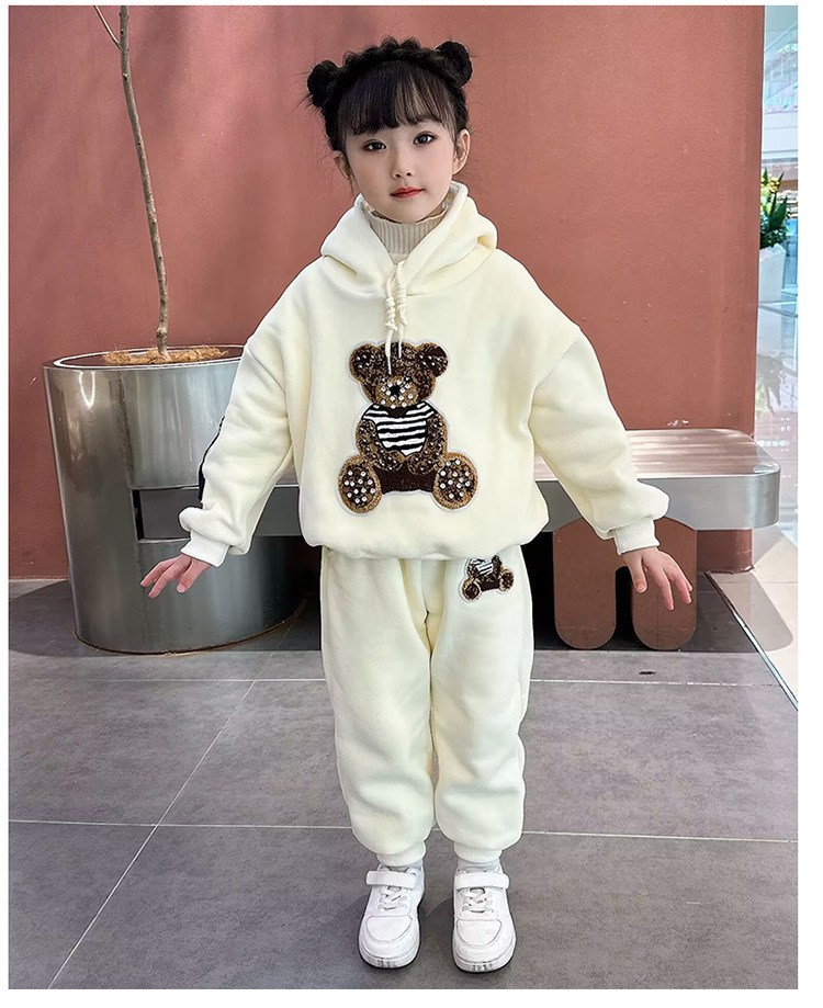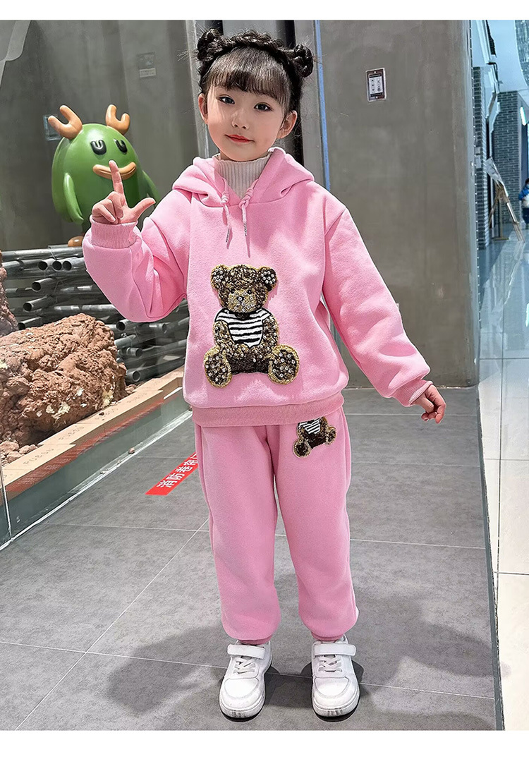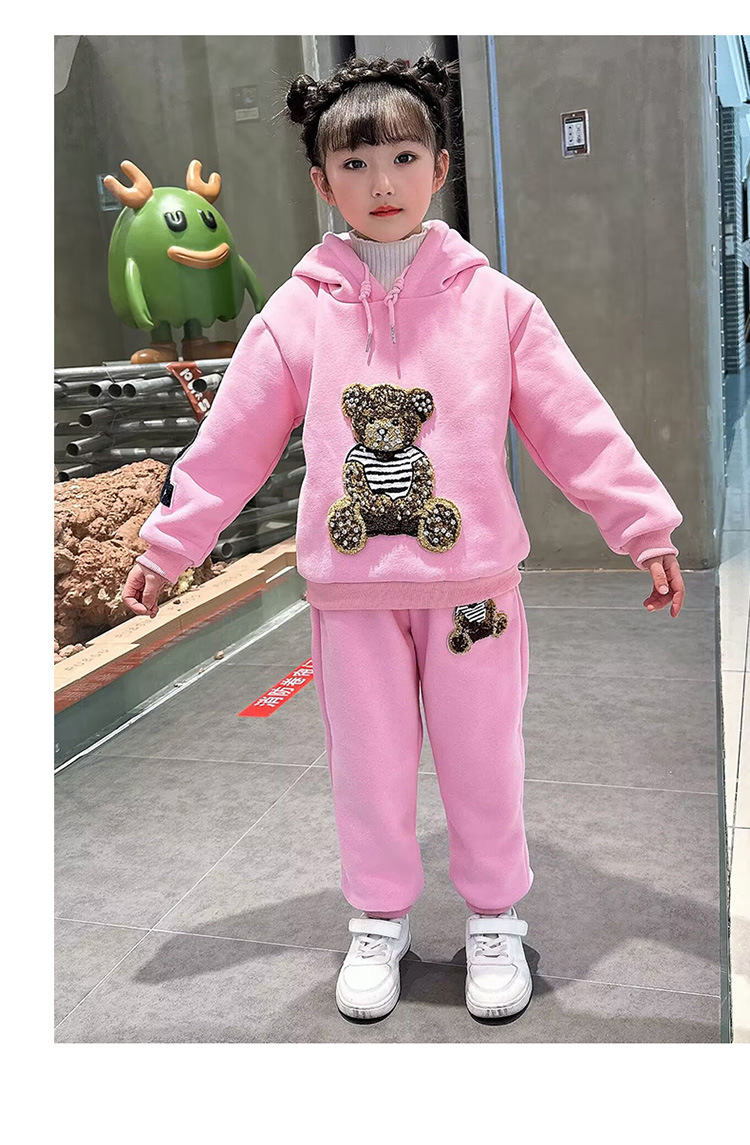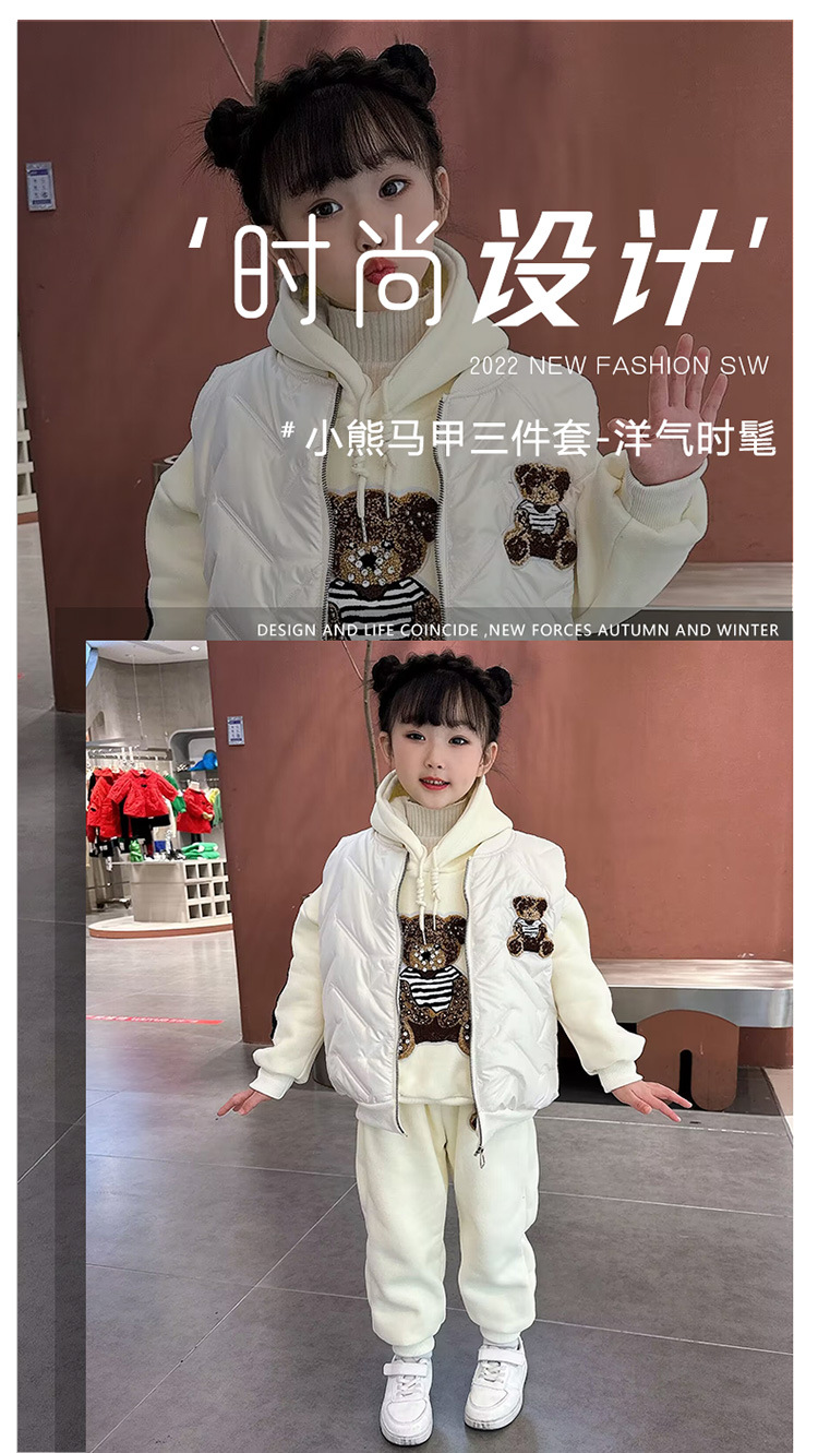 소녀 벨벳 가을 겨울 세트 2024 새로운 어린이 유행 두꺼운 겨울 큰 어린이 조끼 3 조각 세트스토어 가기