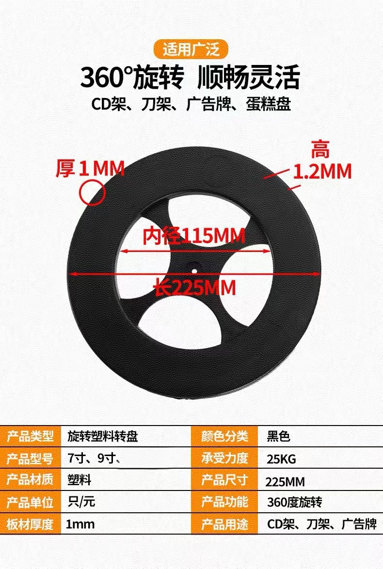 공장 직판 플라스틱 바닥 회전식 칼꽂이 케이크 디저트 진열대 가정용 검정색 볼베어링 7inch 9inch 넓은 수납공간
