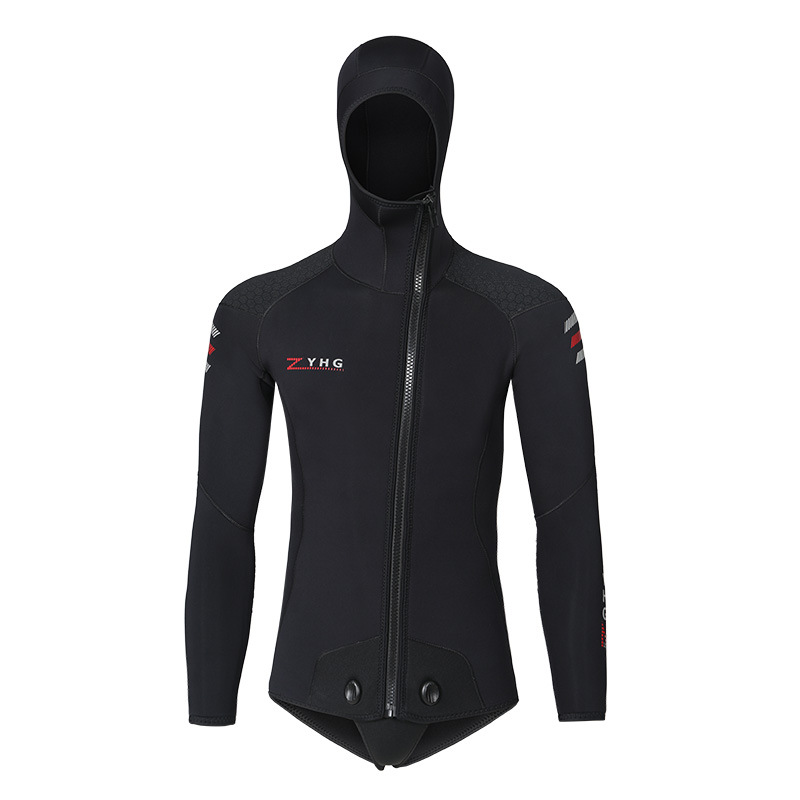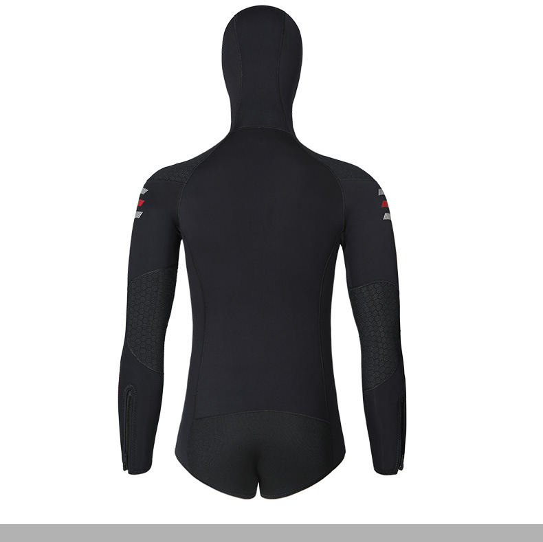 새로운 국경 5mm 다이빙 세트 남성용 두꺼운 한랭 따뜻한 다이빙 세트 긴팔 쪼개진 후드피쉬 사냥 세트