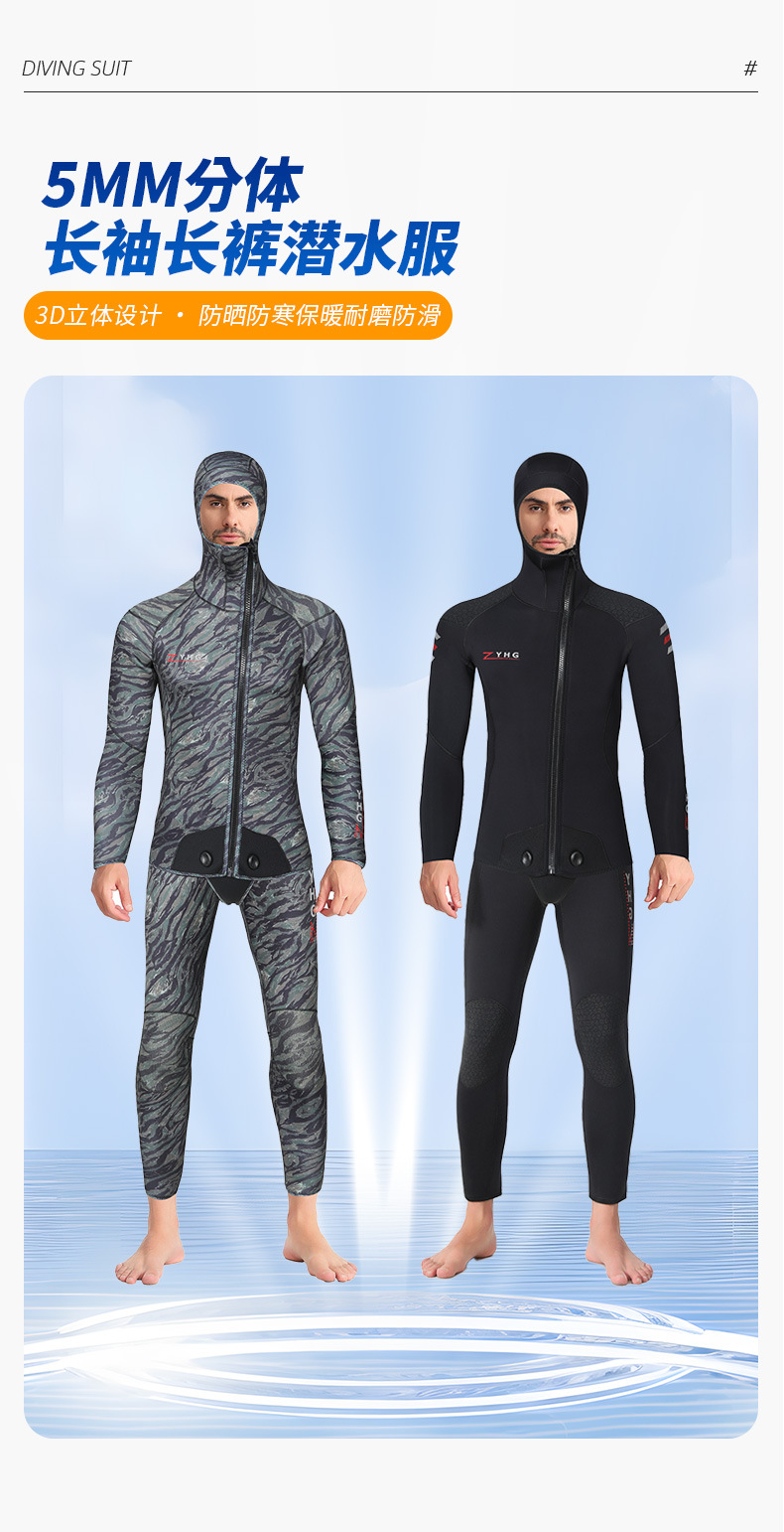 새로운 국경 5mm 다이빙 세트 남성용 두꺼운 한랭 따뜻한 다이빙 세트 긴팔 쪼개진 후드피쉬 사냥 세트스토어 가기