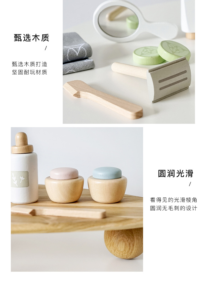 어린이 장난감 나무로 만든 화장품 세트 소녀용 모의 화장놀이 생일 선물 모의 화장대스토어 가기