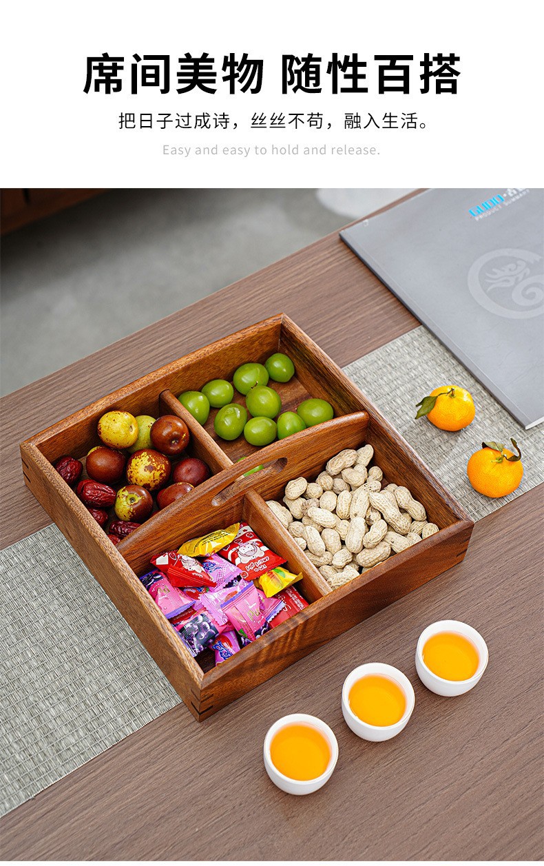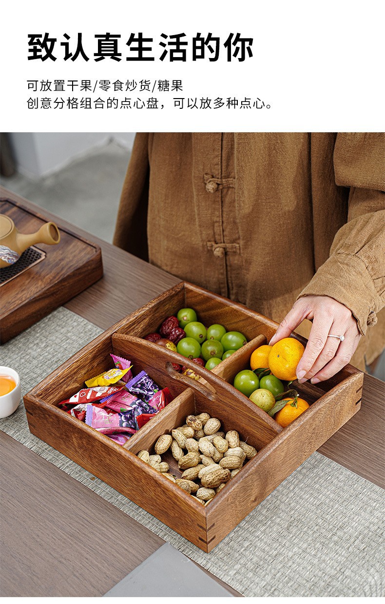 호두 원목 분할 건과일 접시, 차 간식 사탕 상자, 거실 홈 스낵 접시, 새해 견과류 과일 상자스토어 가기
