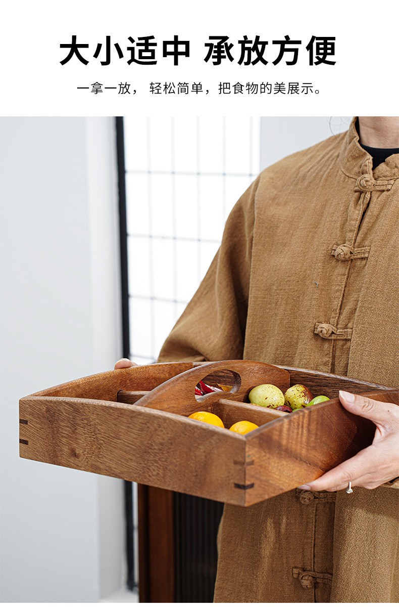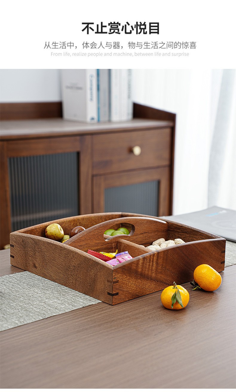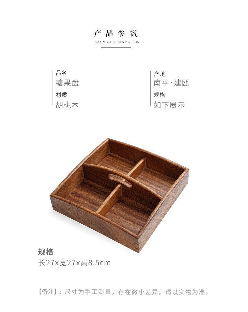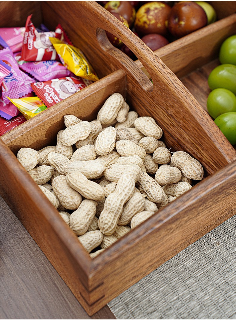 호두 원목 분할 건과일 접시, 차 간식 사탕 상자, 거실 홈 스낵 접시, 새해 견과류 과일 상자