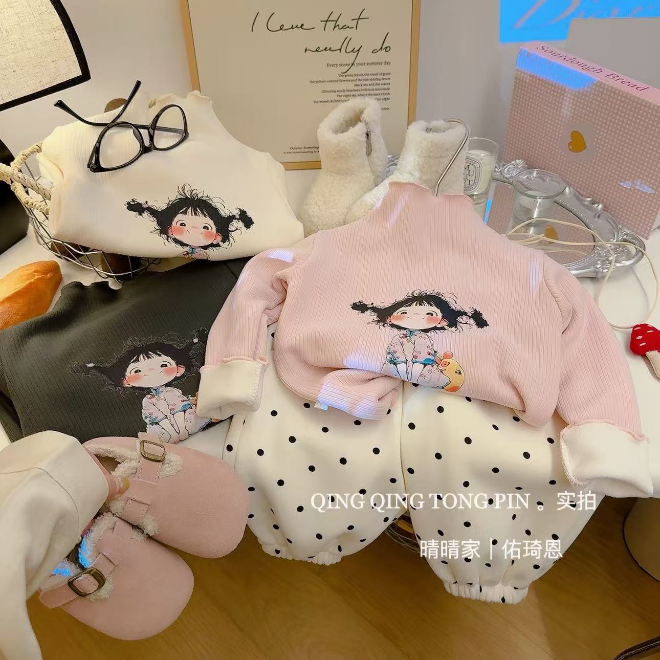 [기모] 어린이 가을 · 겨울 반높이 목걸이 여성 보물 행운의 소녀 귀여운 브레드헤드 기모 베이스 셔츠스토어 가기