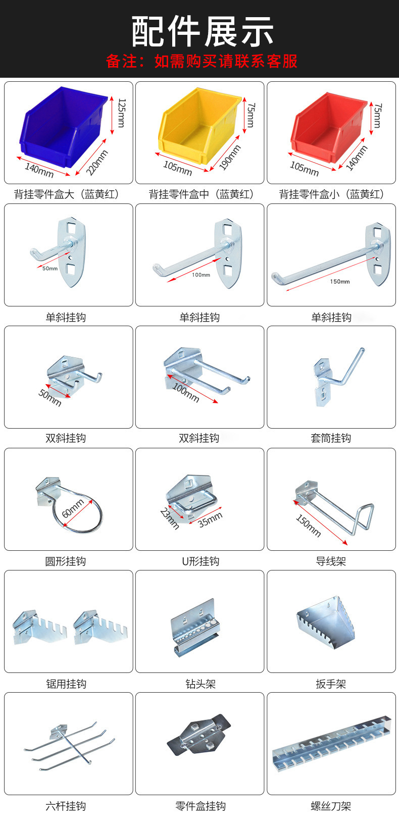 • 걸이형 그물이 있는 튼튼한 도구 캐비닛