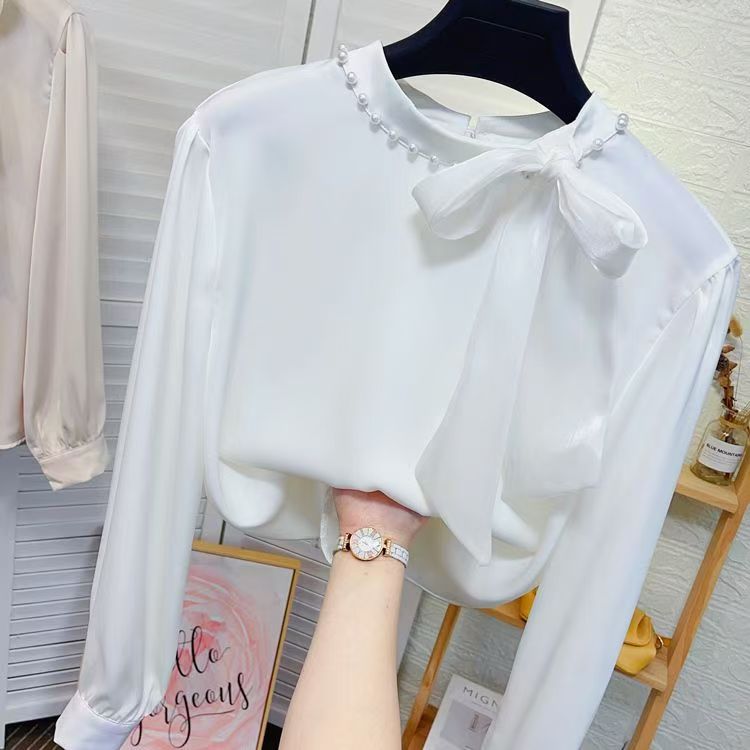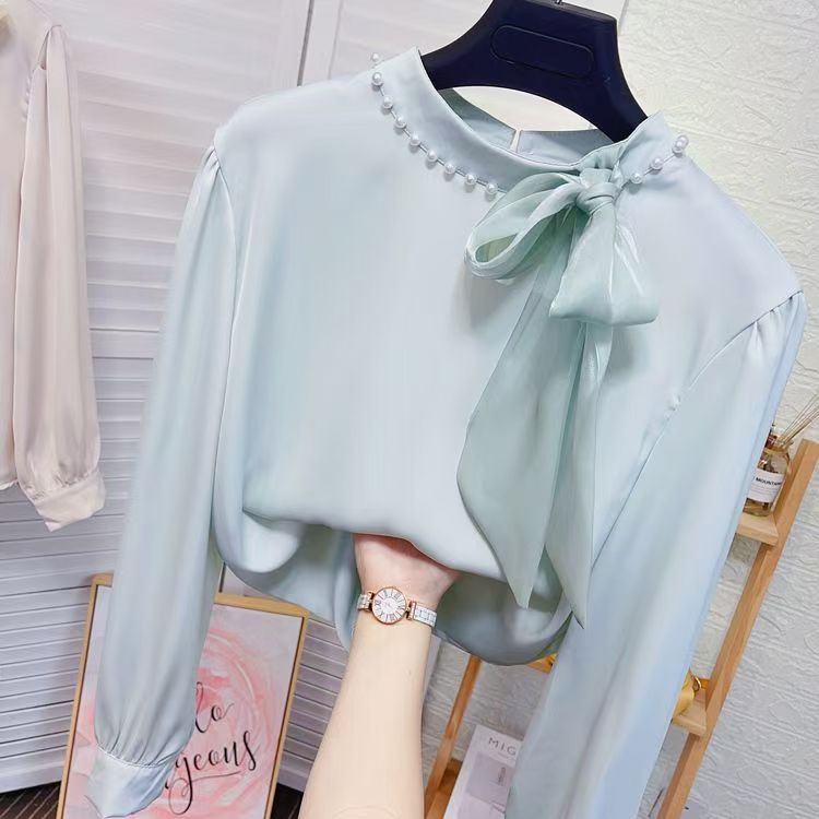Y9Z 눈에 띄게 스타일리시하고 나이를 줄여주는 효과가 있는 리본 칼라 봄 신상 쉬폰 셔츠, 우아한 블라우스스토어 가기
