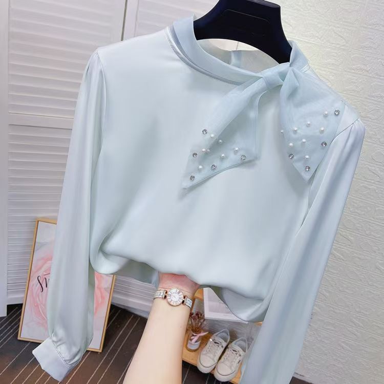 Y9Z 눈에 띄게 스타일리시하고 나이를 줄여주는 효과가 있는 리본 칼라 봄 신상 쉬폰 셔츠, 우아한 블라우스