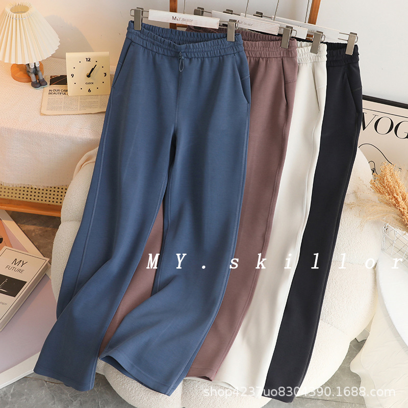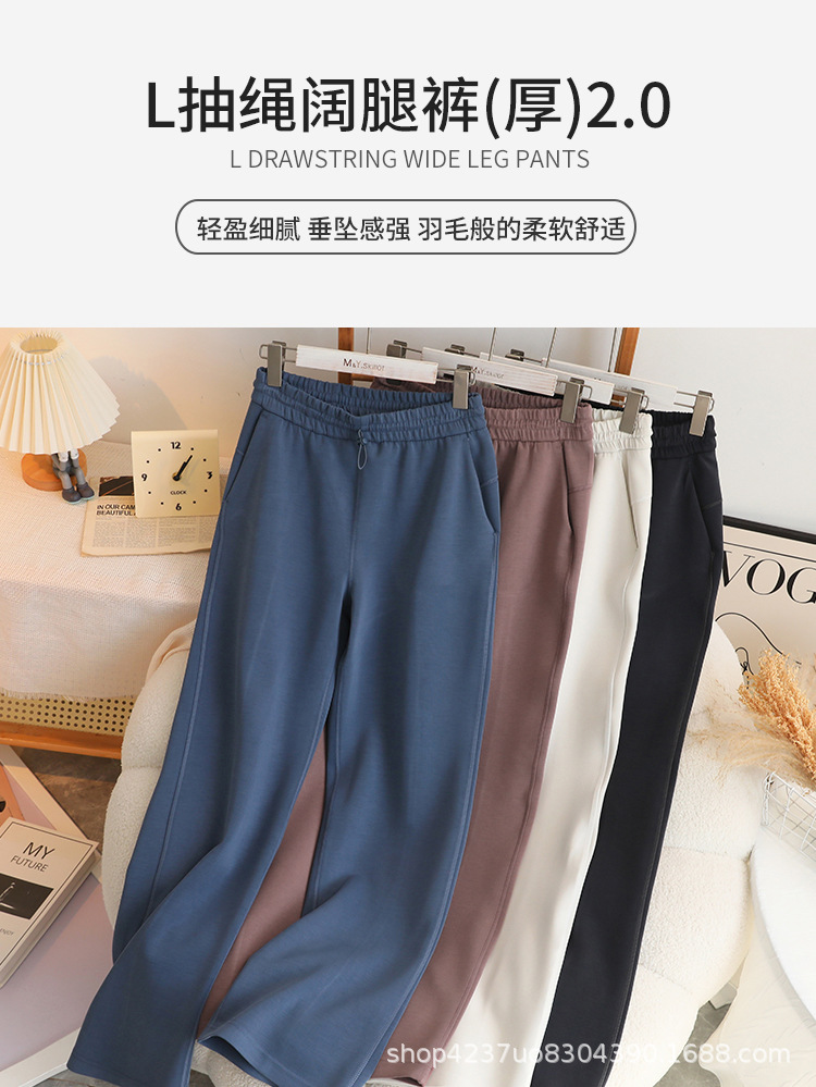 루루 여성의 높은 허리 복부 슬리밍 넓은 다리 바지 가을 및 겨울 좁은 판 스트레이트 바디 스포츠 요가 바지스토어 가기