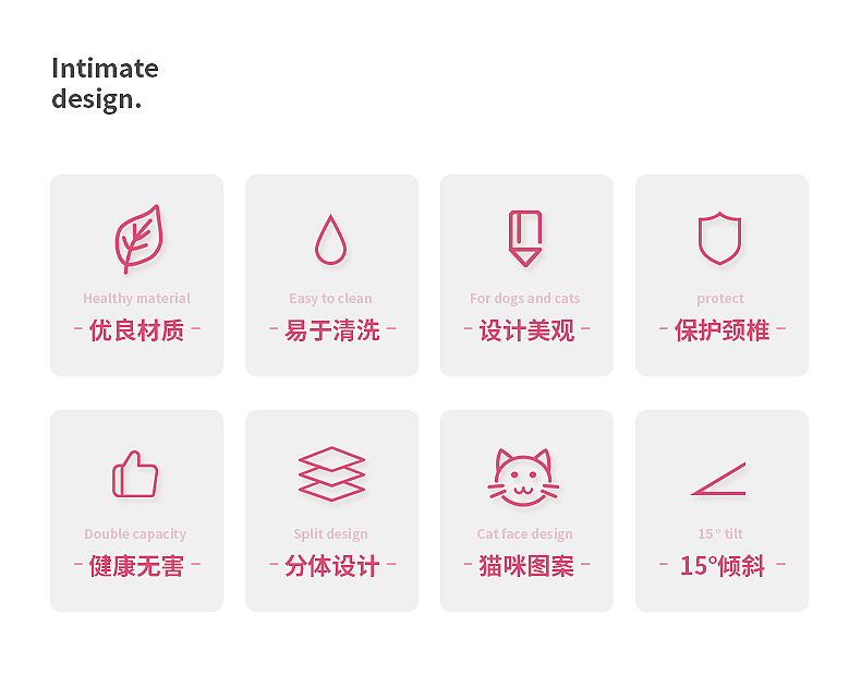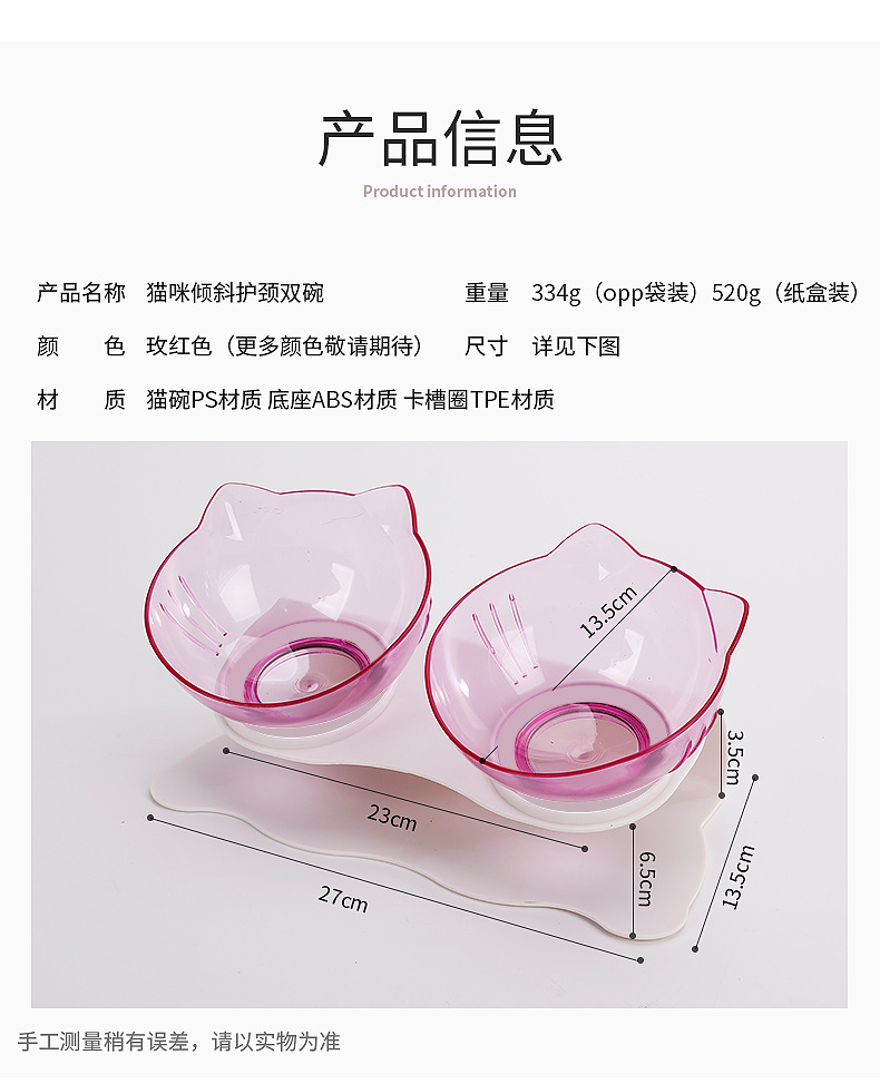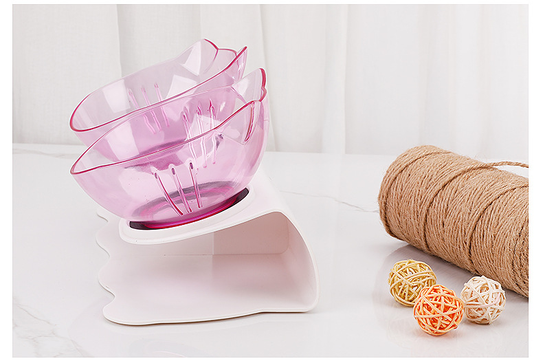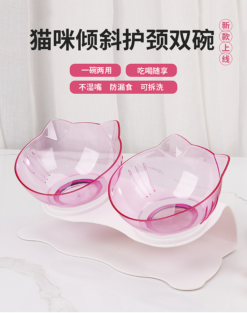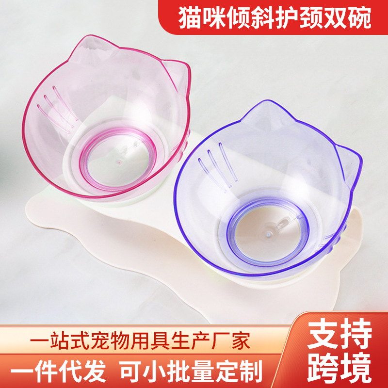 제조업체는 새로운 고양이와 개 먹이 및 물통 플라스틱 고양이 그릇과 개 그릇 경사 목 보호 미끄럼 방지 이중 그릇을 맞춤 제작했습니다.