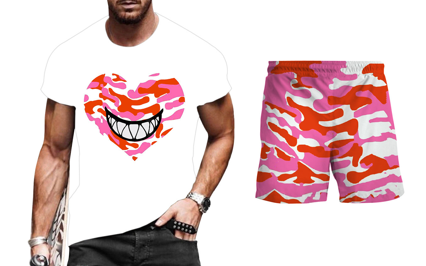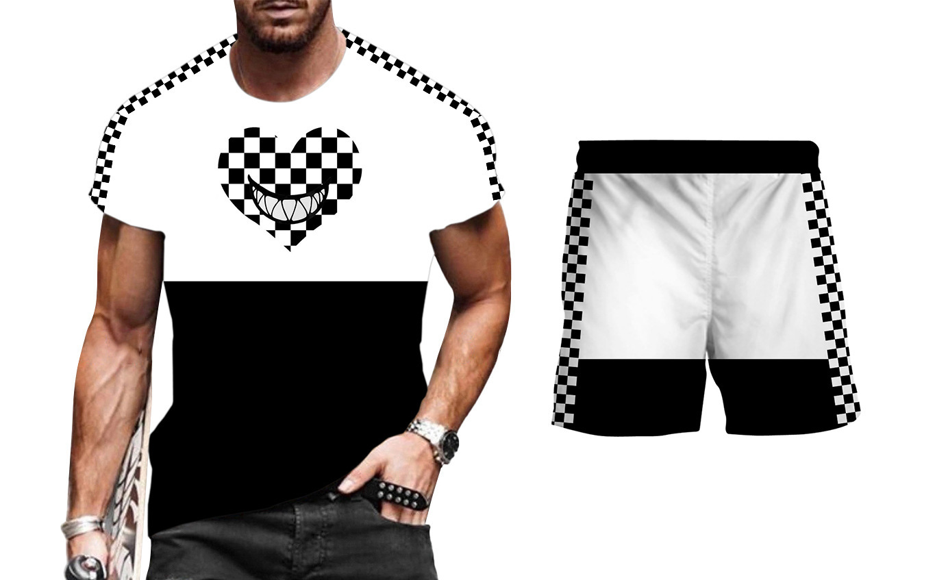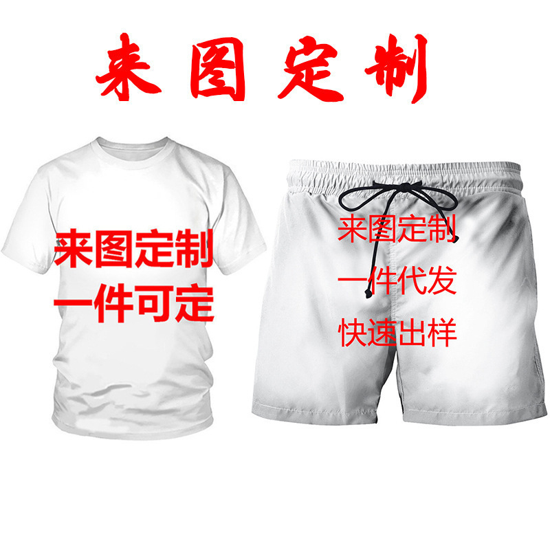 2025 국경 대외 무역 새로운 만화 3D 인쇄 남성 티셔츠 스포츠 세트 레저 플러스 사이즈 짧은 소매 공장 직접 판매스토어 가기