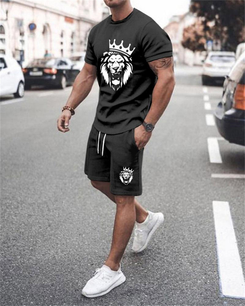 2025 국경 대외 무역 새로운 만화 3D 인쇄 남성 티셔츠 스포츠 세트 레저 플러스 사이즈 짧은 소매 공장 직접 판매
