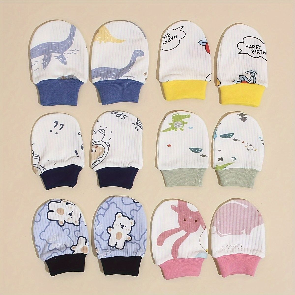 • (오색꼬마공룡 + 오색큰공룡 + 핑크그린코끼리와 원숭이 + 파란곰 + 노란소 + 남색꼬마공룡) 6색조합 포장엣지장갑