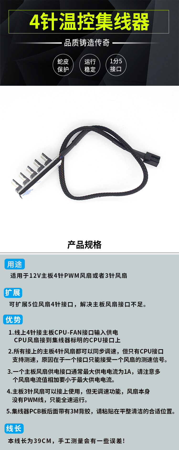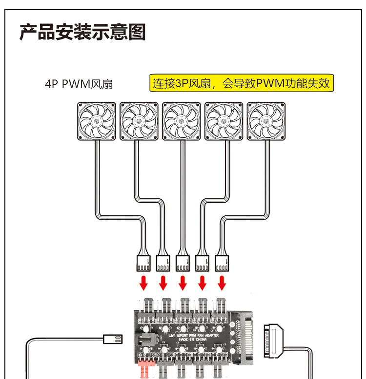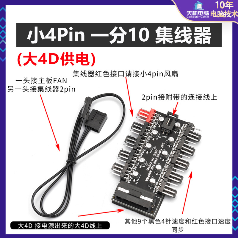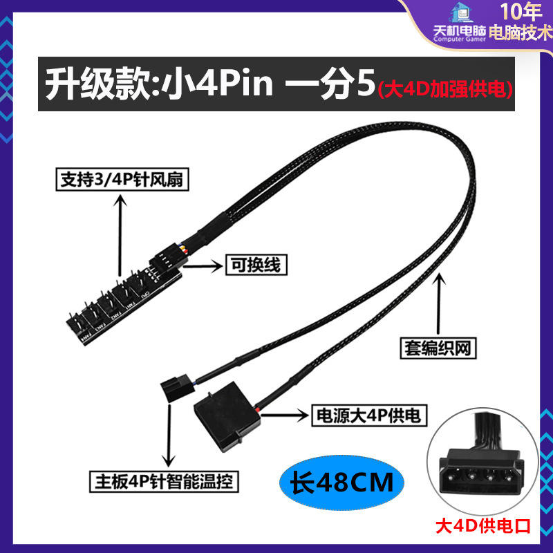 팬 허브 1 ~ 2/3/4/5/10 스플리터 4 핀 팬 전송 허브 도킹 스테이션 CPU 섀시 냉각