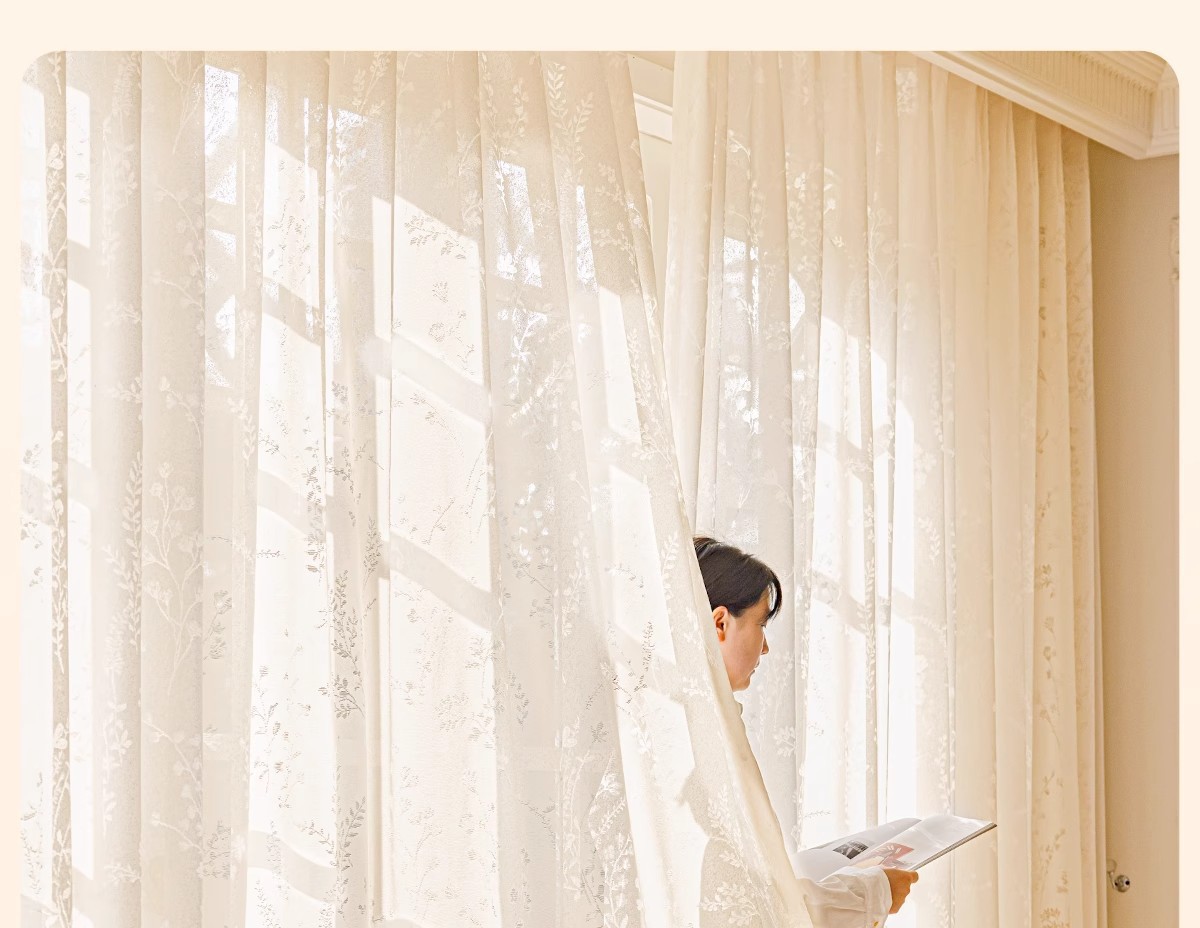 크림색 거울형 베일 커튼, 빛은 들어오지만 사람은 보이지 않는 흰색 거즈 커튼, 자외선 차단, 단열, 차양, 발코니, 거실용 창문 커튼스토어 가기
