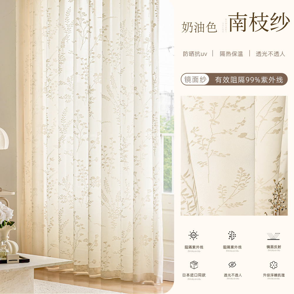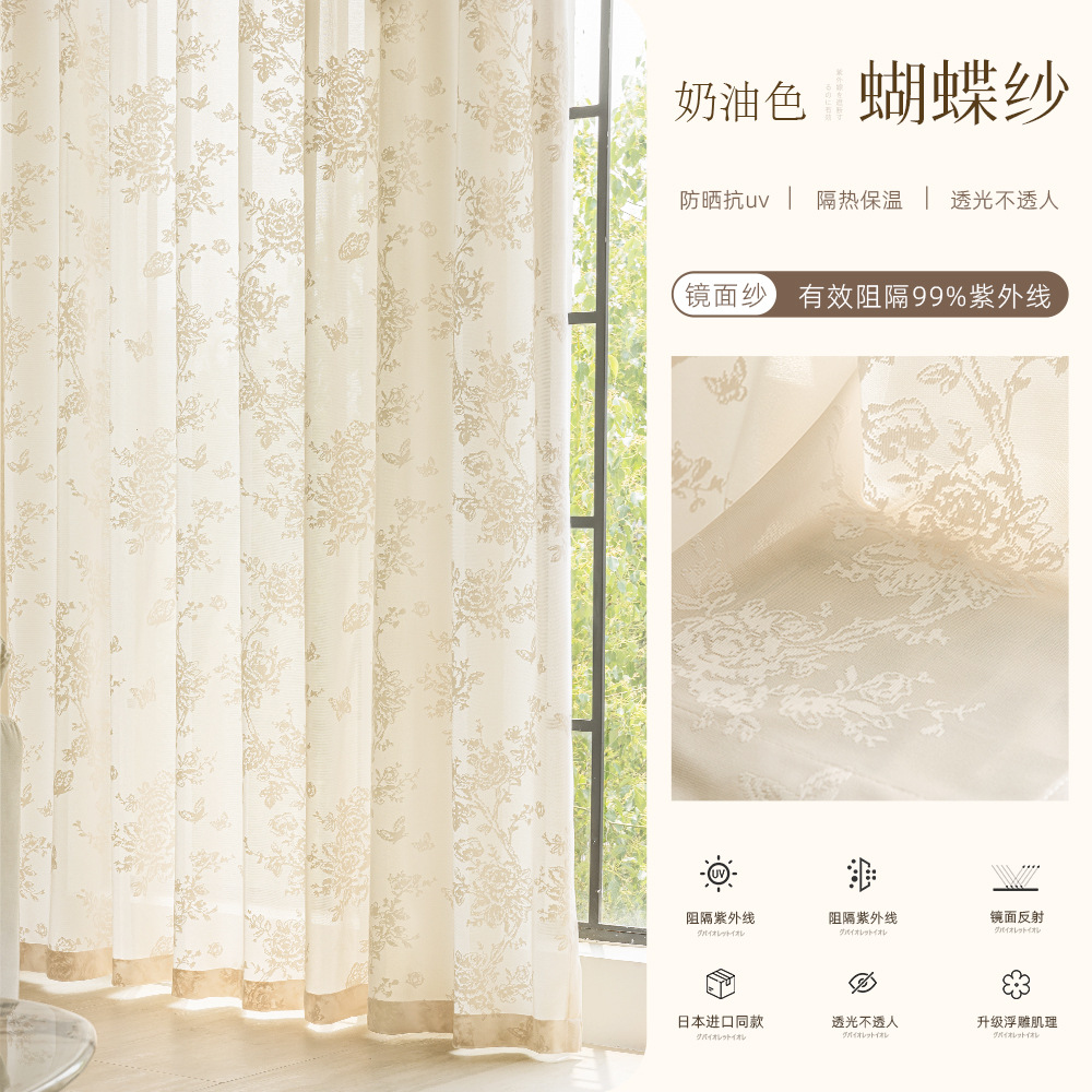 크림색 거울형 베일 커튼, 빛은 들어오지만 사람은 보이지 않는 흰색 거즈 커튼, 자외선 차단, 단열, 차양, 발코니, 거실용 창문 커튼