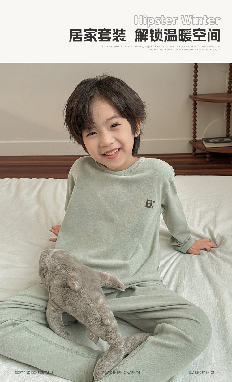 2025년 신상 남아 패션 하이마아동복 남자아이 홈웨어 세트 가을옷 가을바지 잠옷 데롱