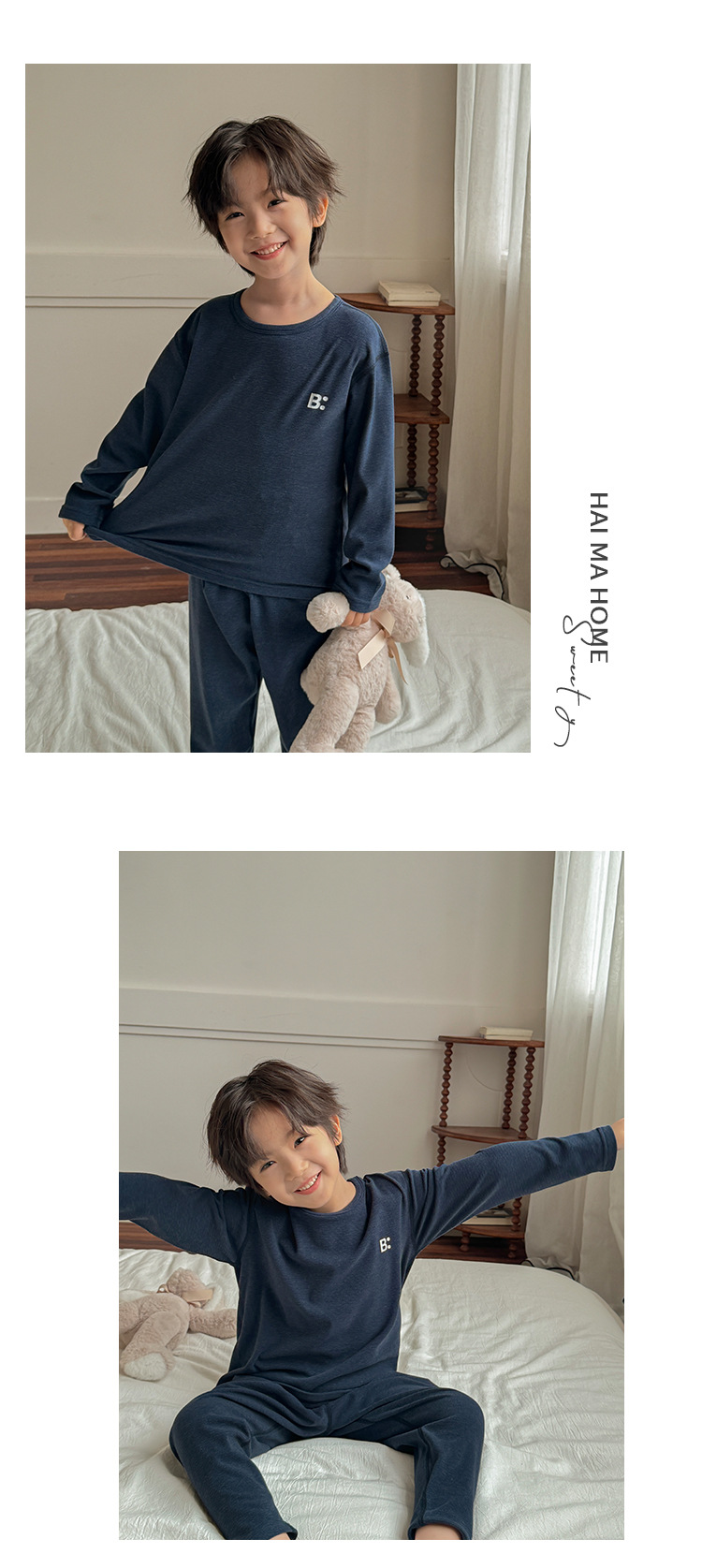 2025년 신상 남아 패션 하이마아동복 남자아이 홈웨어 세트 가을옷 가을바지 잠옷 데롱스토어 가기