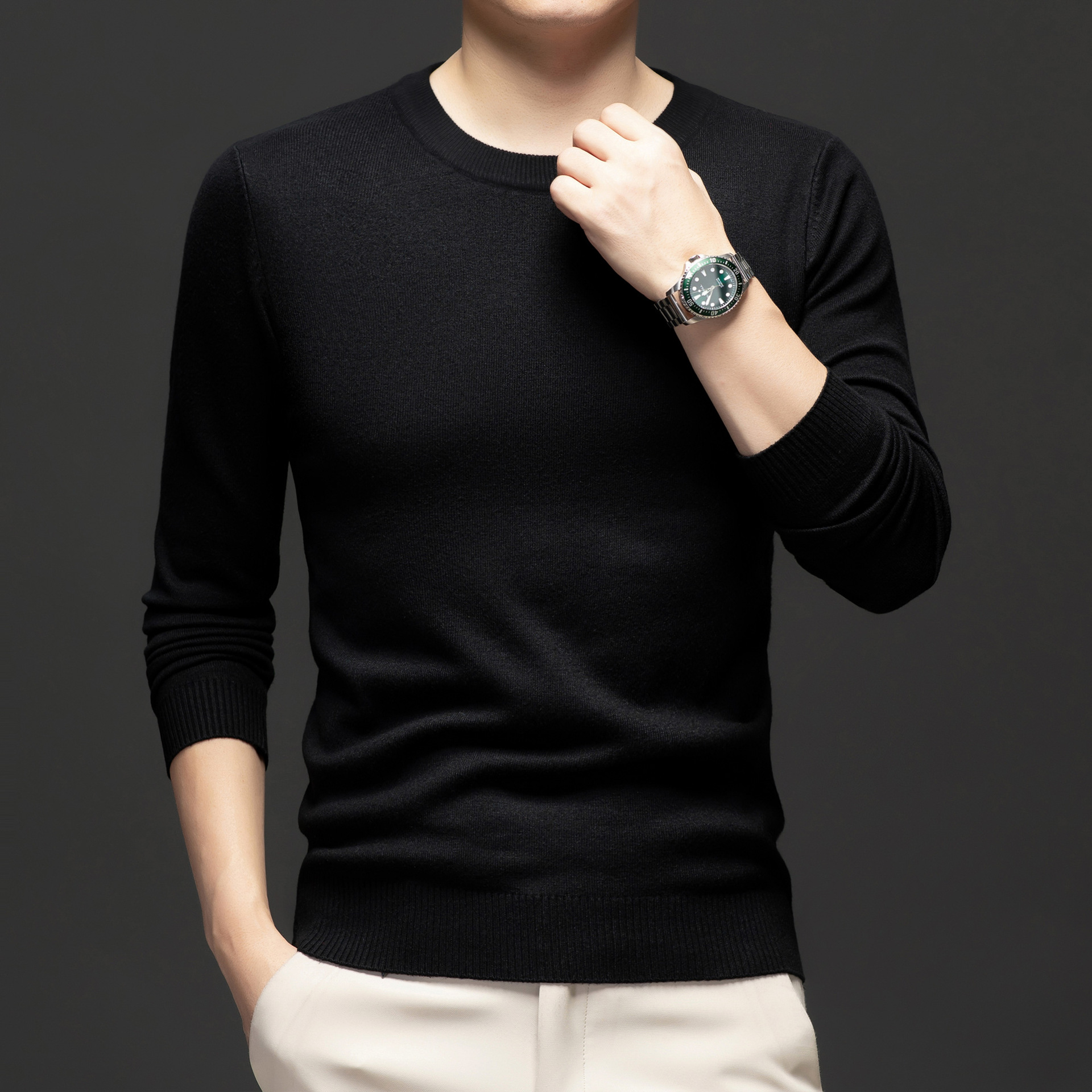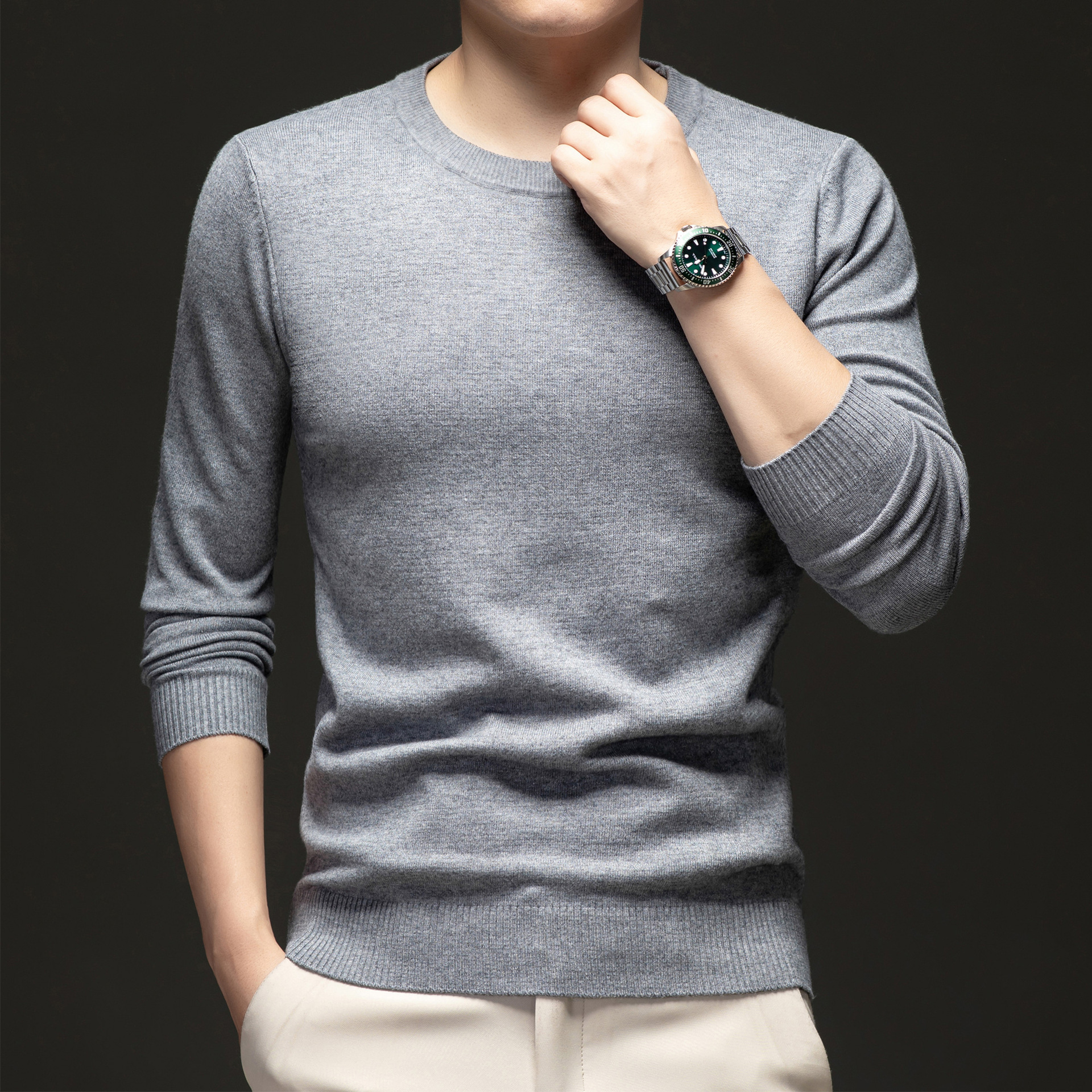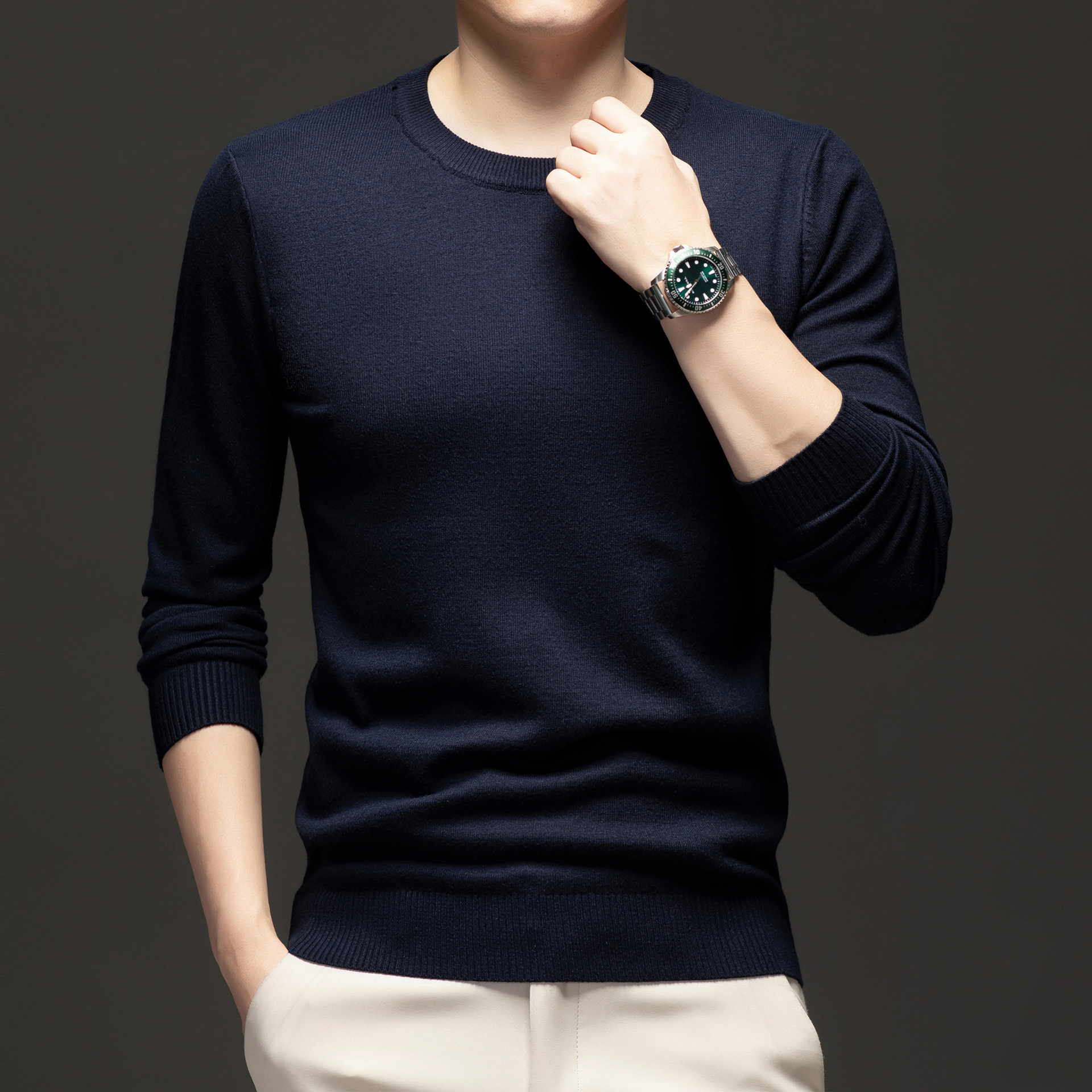 국경 간 남성 패션 캐주얼 크루 넥 니트웨어 2024 가을과 겨울 새로운 따뜻한베이스 셔츠 올 매치 스웨터 남성복