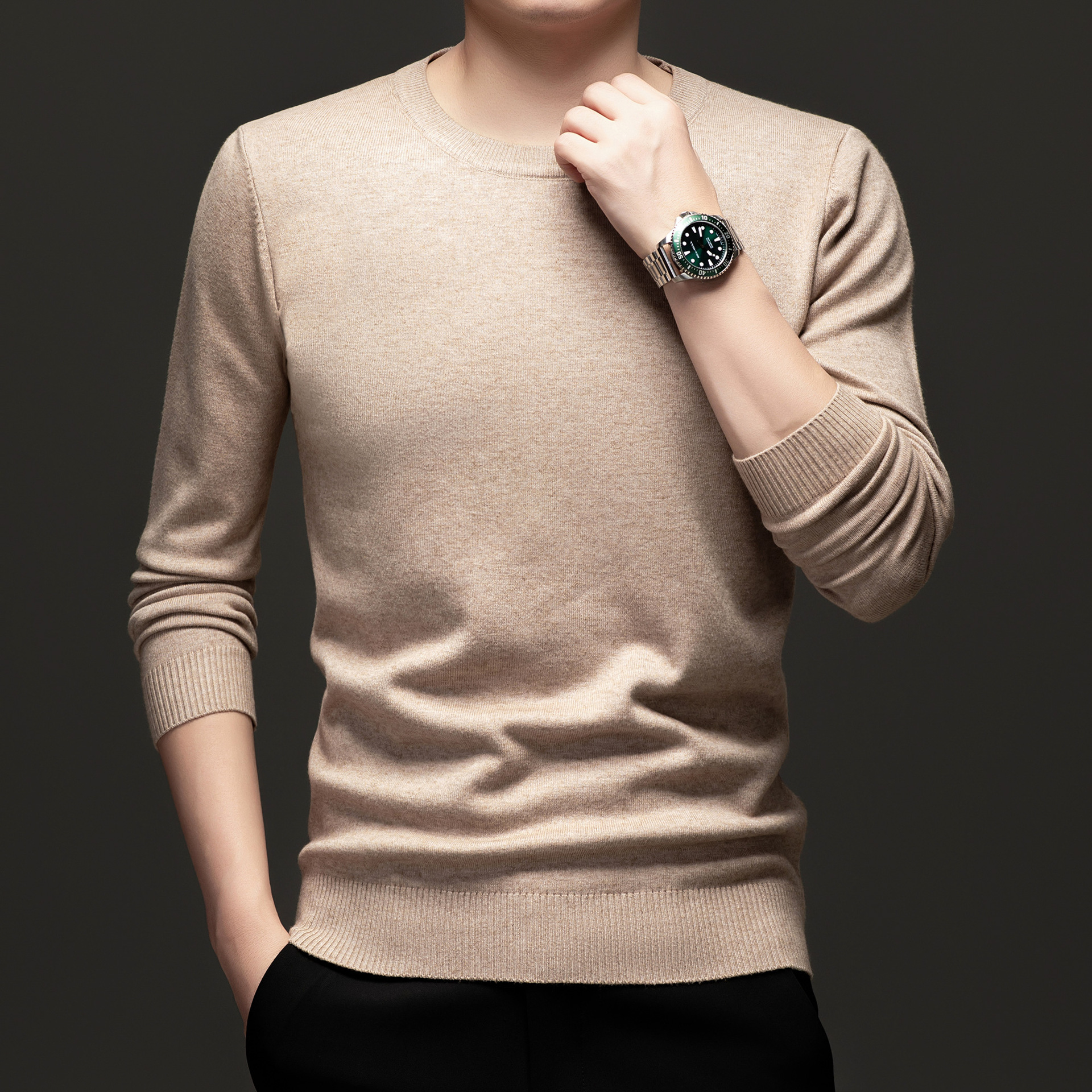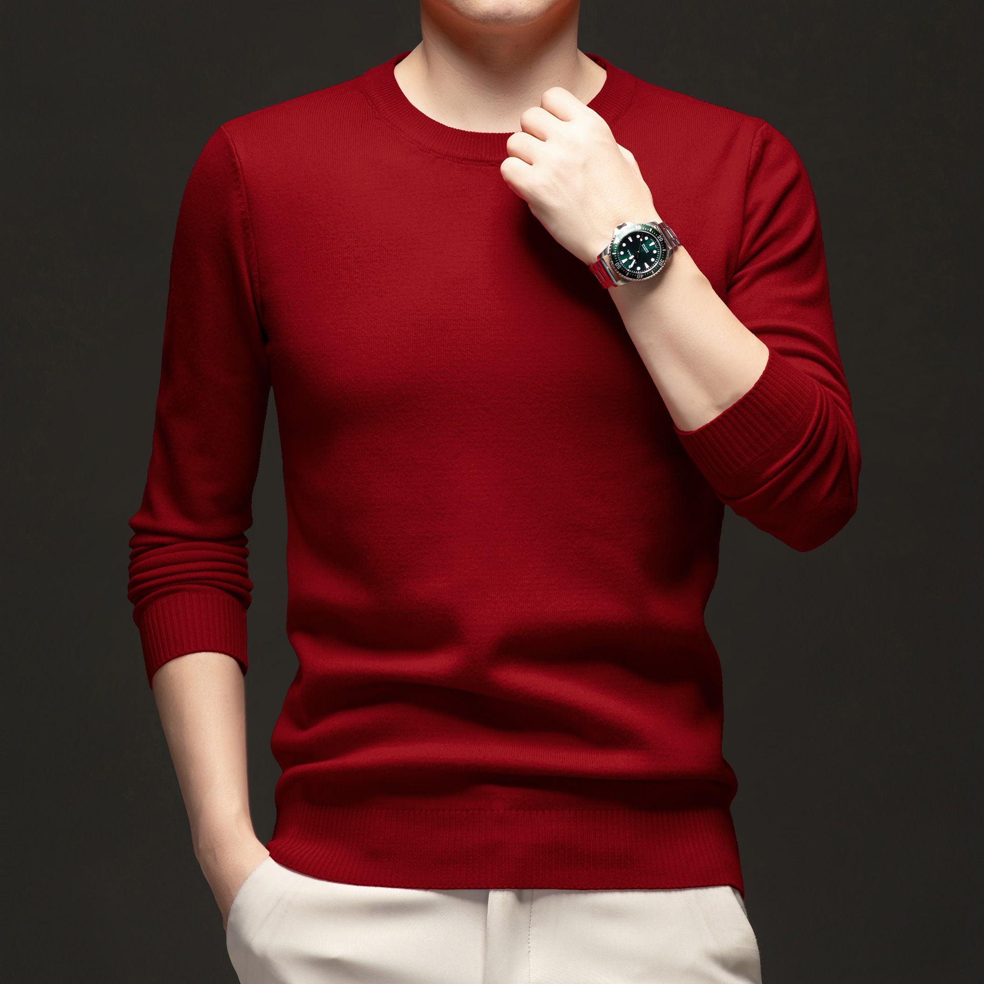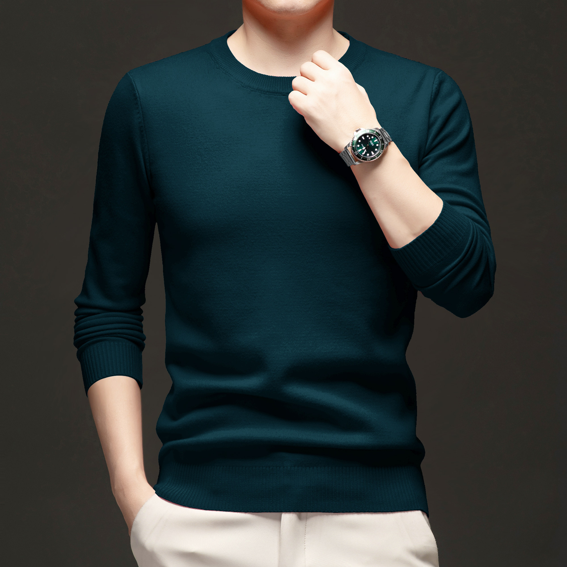 국경 간 남성 패션 캐주얼 크루 넥 니트웨어 2024 가을과 겨울 새로운 따뜻한베이스 셔츠 올 매치 스웨터 남성복