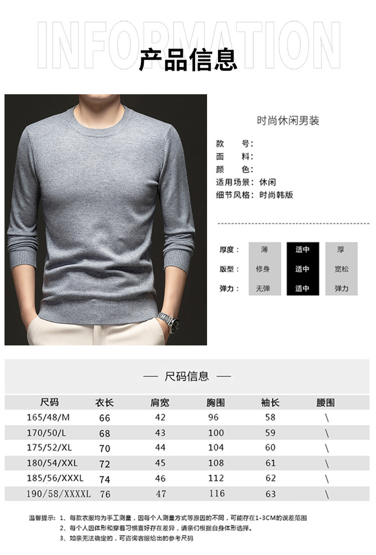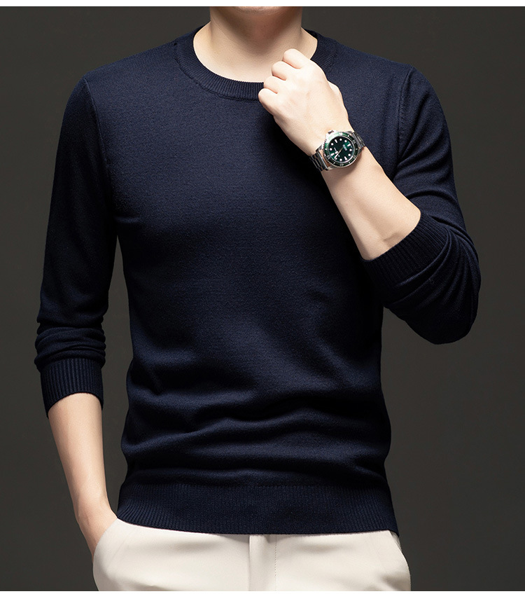 국경 간 남성 패션 캐주얼 크루 넥 니트웨어 2024 가을과 겨울 새로운 따뜻한베이스 셔츠 올 매치 스웨터 남성복스토어 가기
