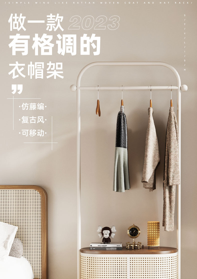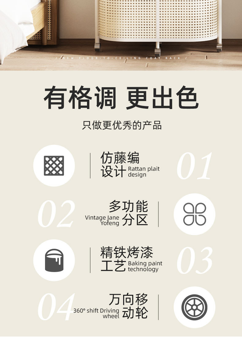 코트 랙 바닥-스탠딩 침실 중간 스타일 가벼운 럭셔리 이동식 등나무-가짜 더러운 옷 바구니 빈티지 스토리지 걸이