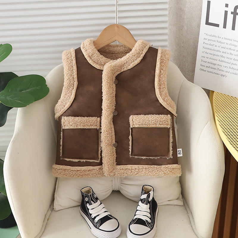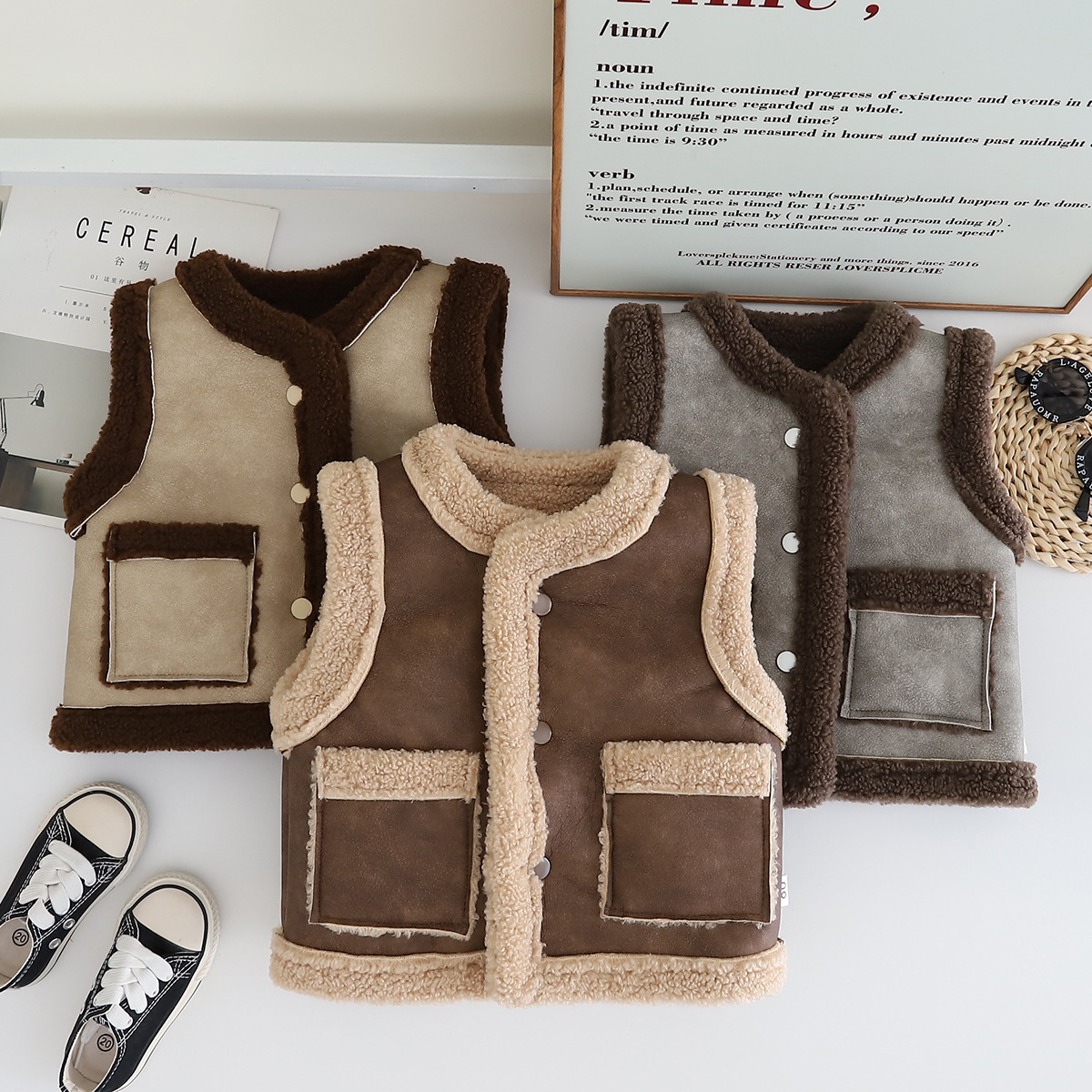소년 소녀 아기 플러스 벨벳 패딩 조끼 싱글 작은 어린이 가을과 겨울 새 옷 멋진 잘 생긴 공장 도매