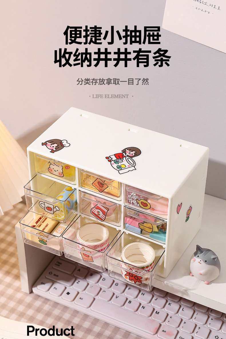 Jiugongge 저장 상자 구오 카드 스티커 종이 상자 데스크탑 서랍 귀여운 책상 여성 보석 캐비닛 작은 마무리 랙