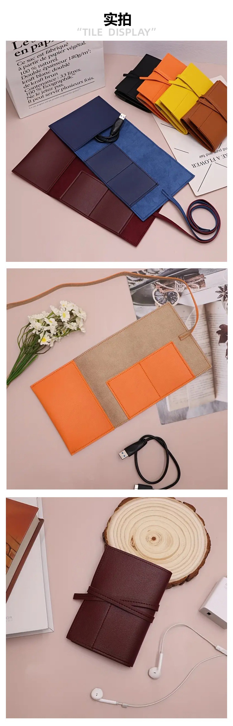 P 패션 U 가죽 휴대 전화 케이블 장치 패키지 휴대용 케이블 주최자 헤드셋 가죽 로프 보관 가방스토어 가기
