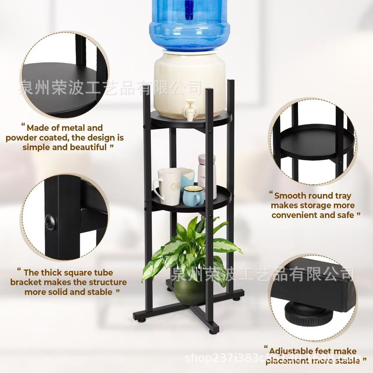 워터 디스펜서 브래킷 철 금속 검은 화분 식물 랙 3 층 실내 바닥 꽃 랙 야외 유니버설