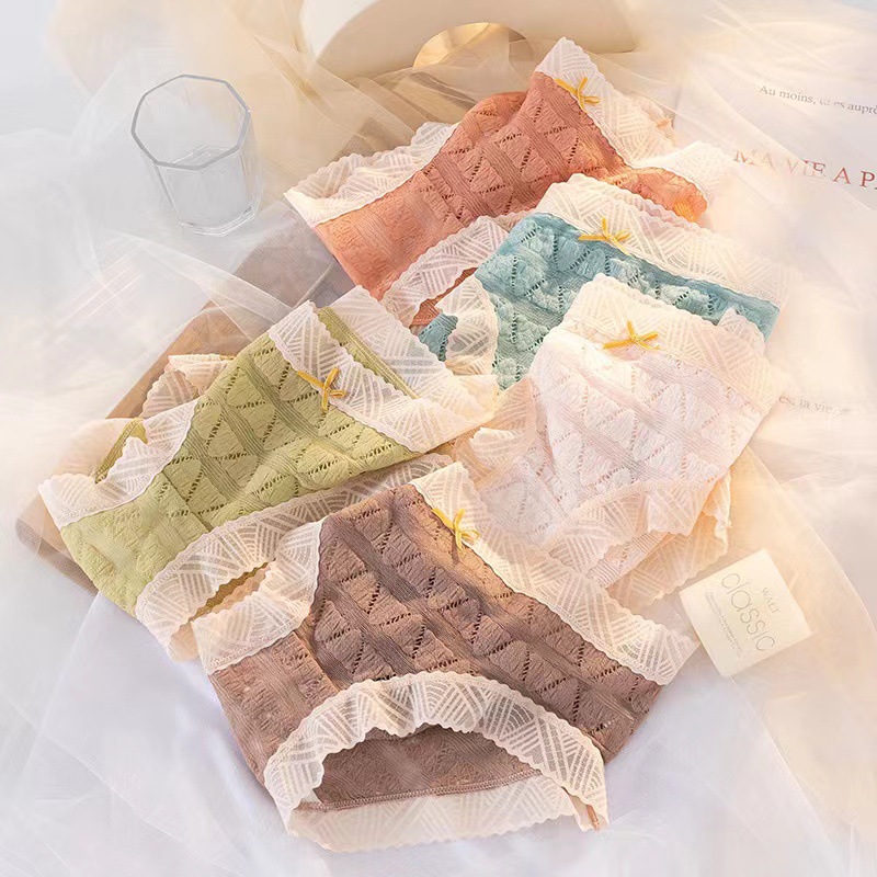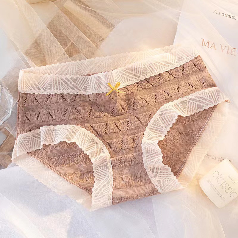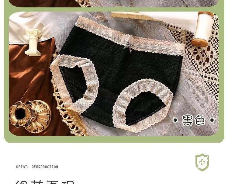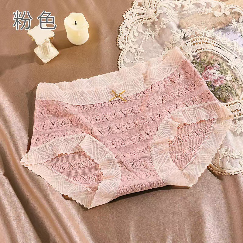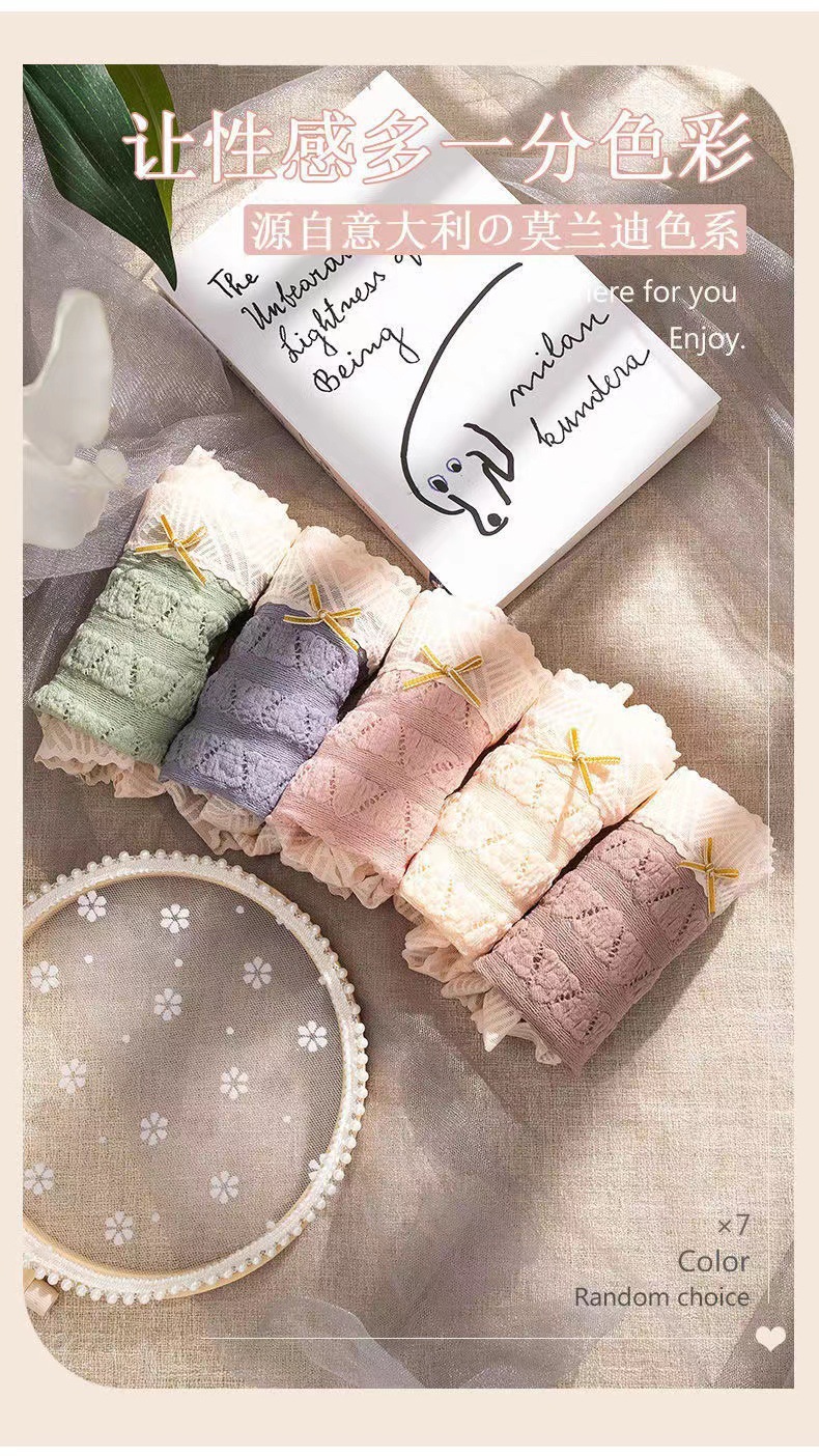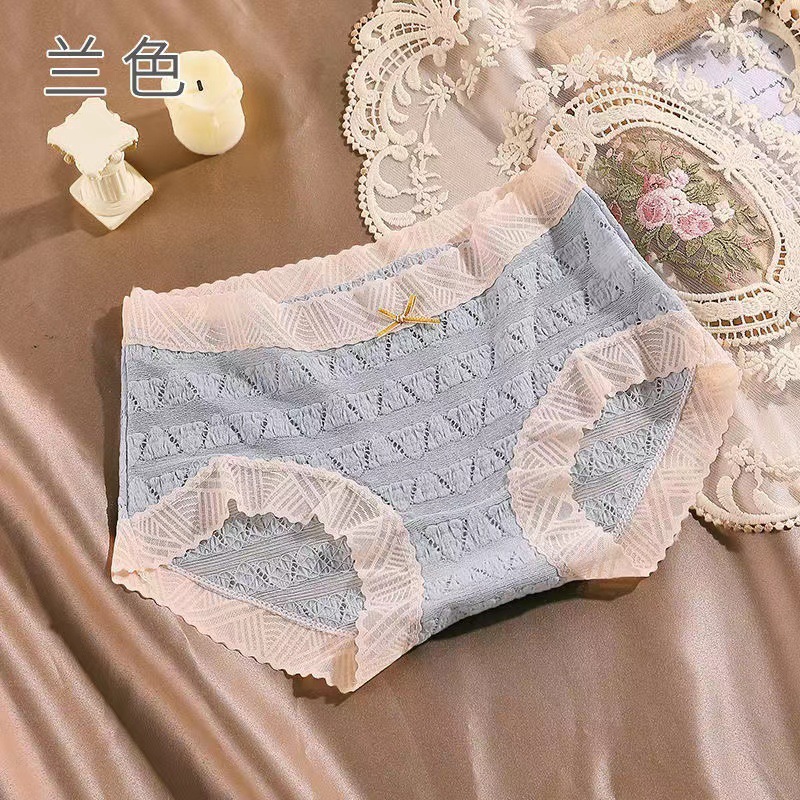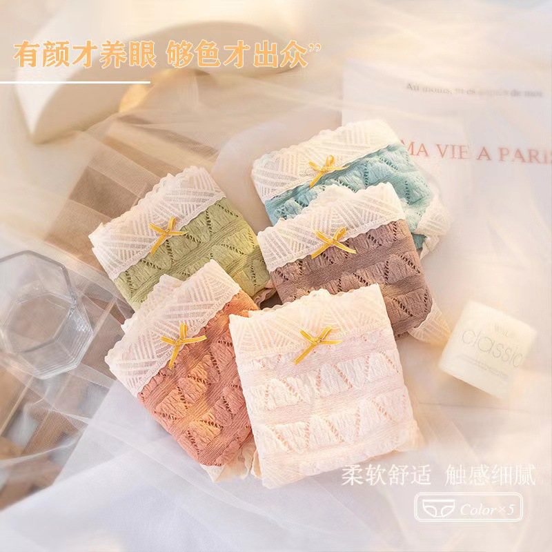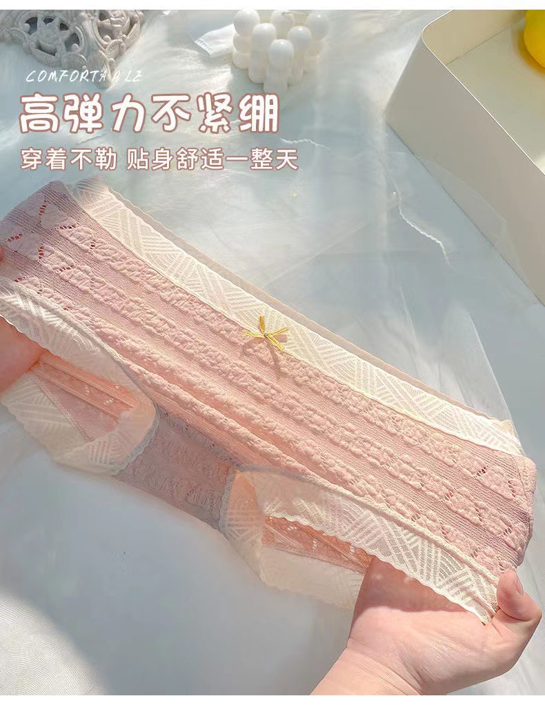 일본식 달콤한 레이스 속옷 여성용 코튼 크로 치 보우 Traceless 프랑스 통기성 중간 허리 브리프 학생 여학생스토어 가기