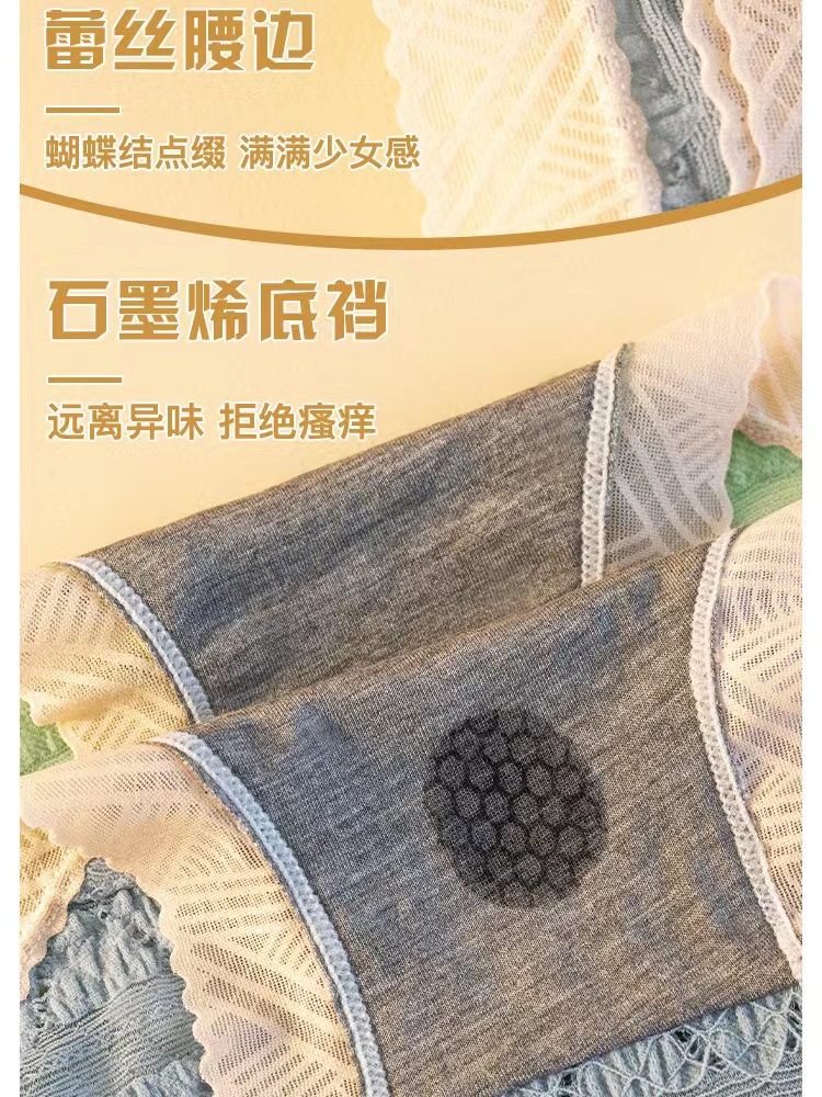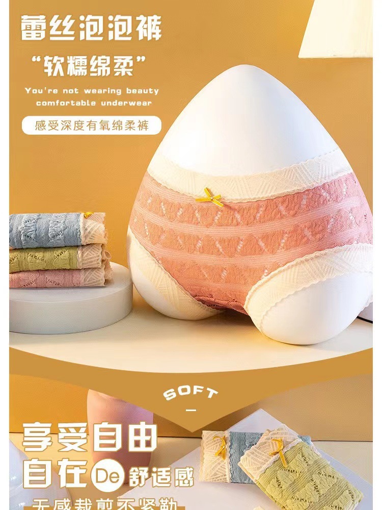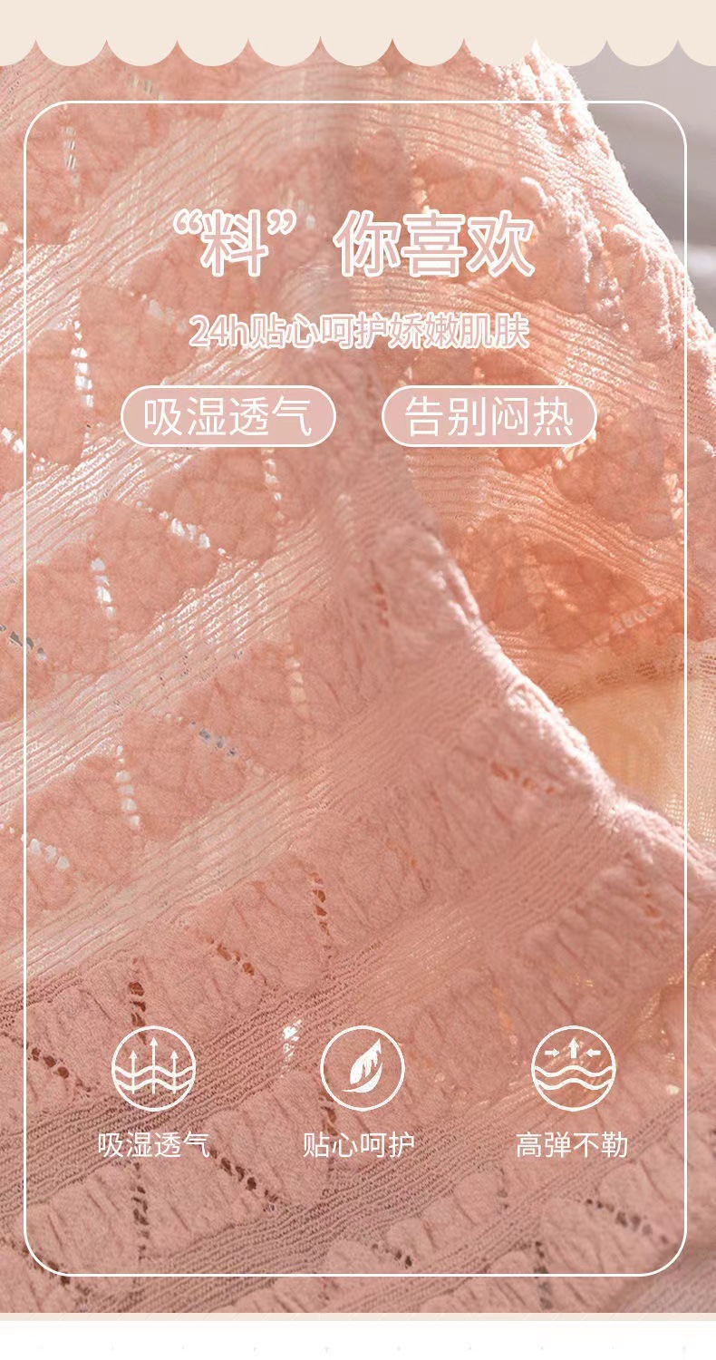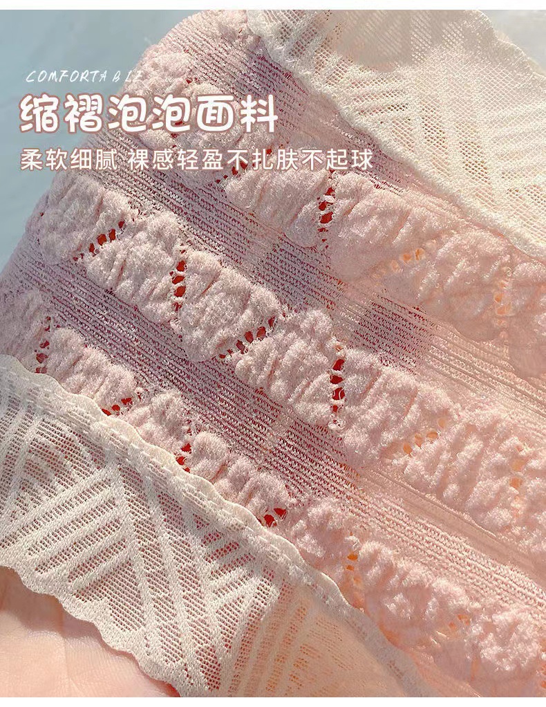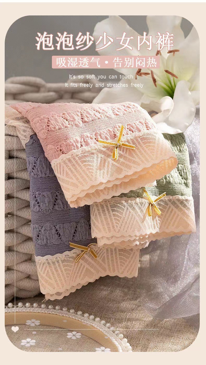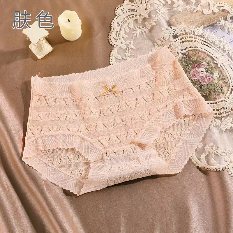 일본식 달콤한 레이스 속옷 여성용 코튼 크로 치 보우 Traceless 프랑스 통기성 중간 허리 브리프 학생 여학생스토어 가기