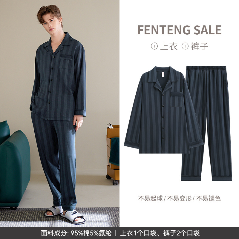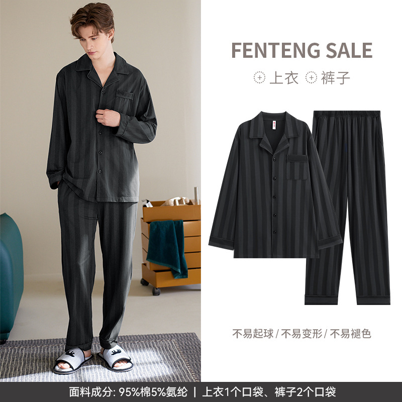 [수면면] 남성용 잠옷 봄 · 가을 새면 긴팔 청춘 느슨한 플러스 사이즈 가정옷 세트스토어 가기