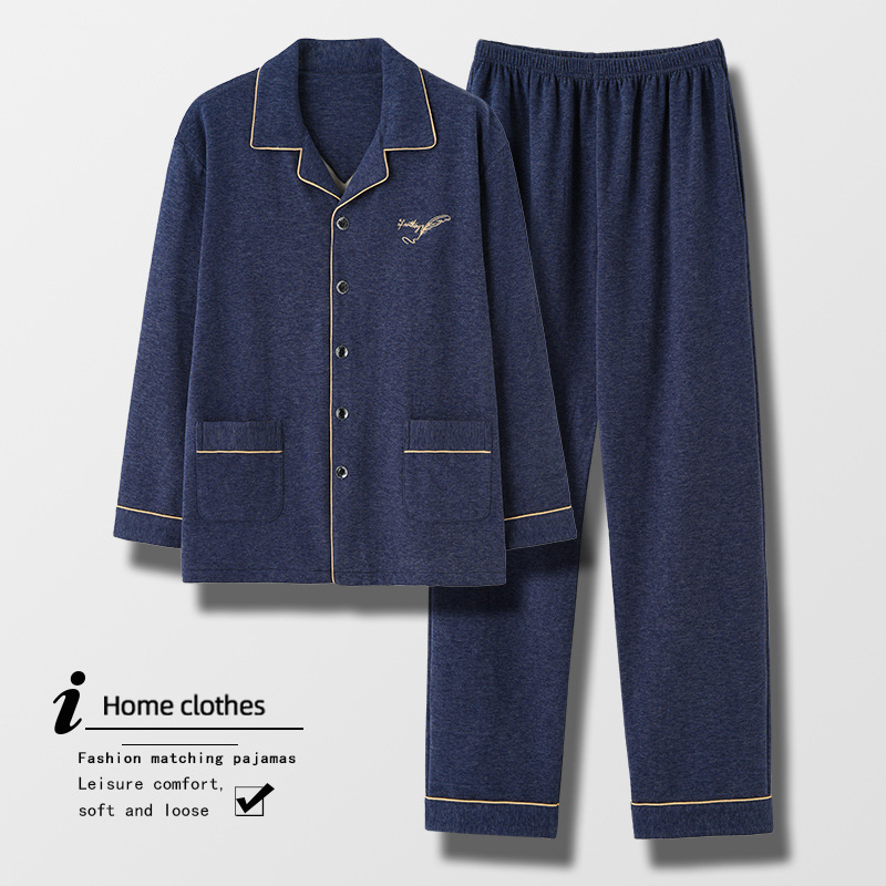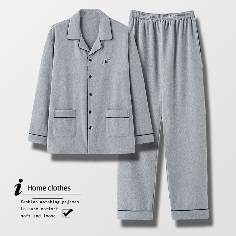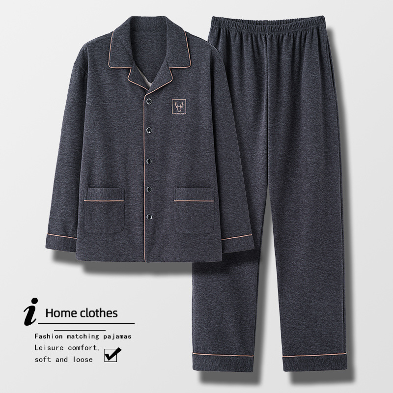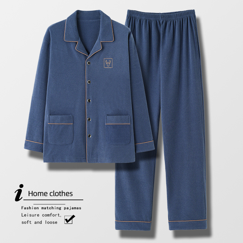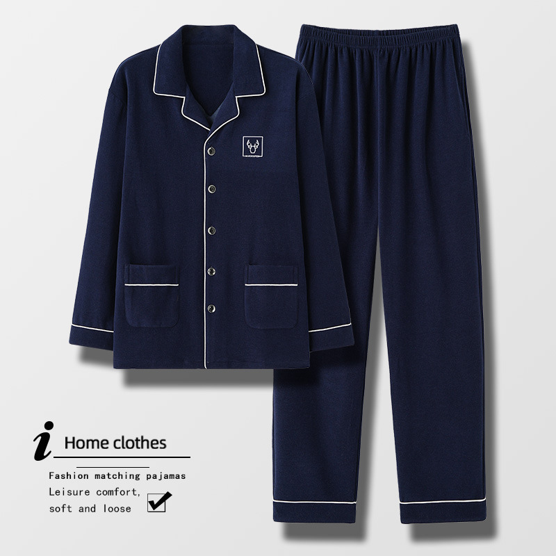 [독일 벨벳] 양면 샌딩 파자마 남자 가을과 겨울 두꺼운 따뜻한 캐주얼 카디건 옷깃 홈 의류 세트