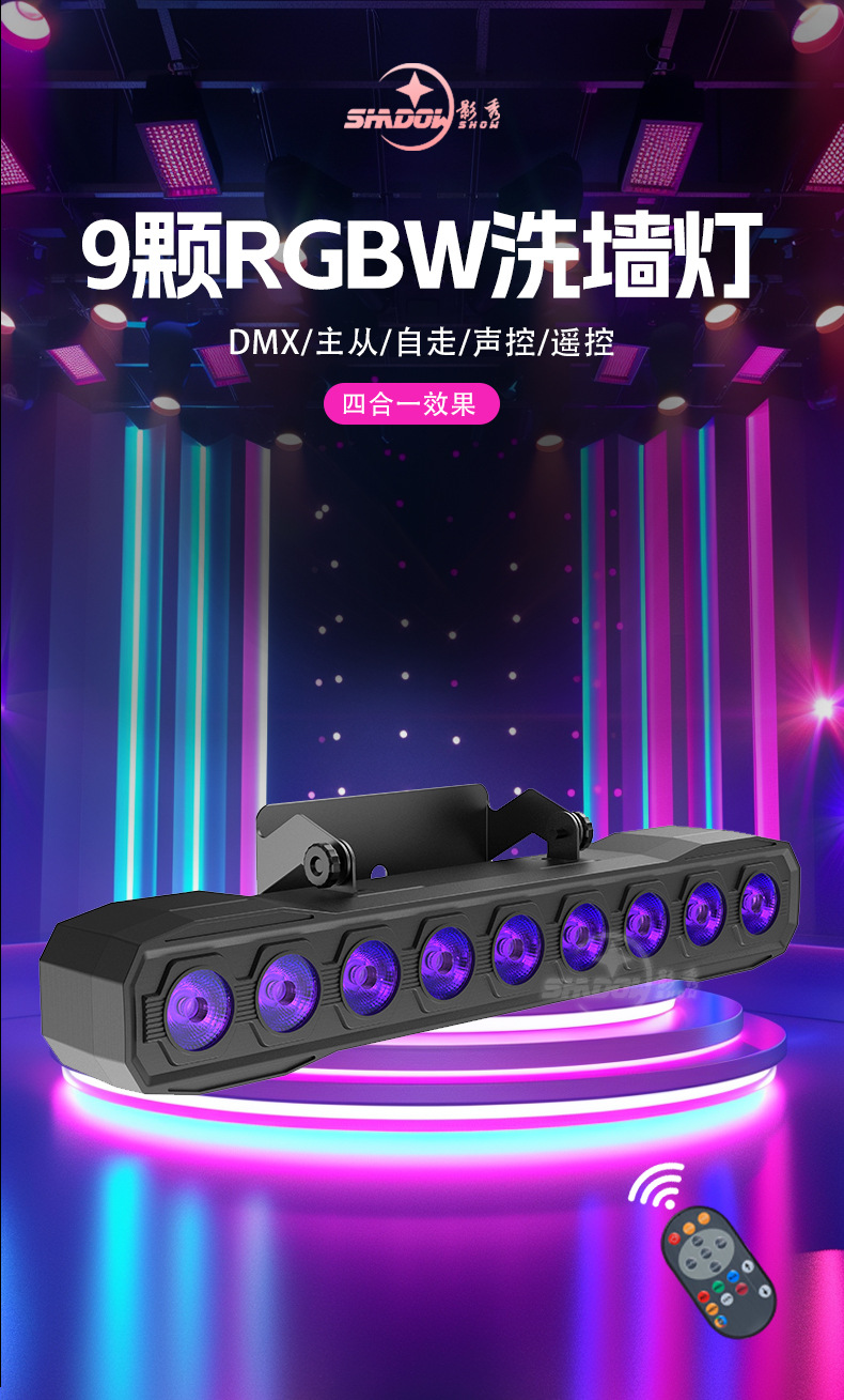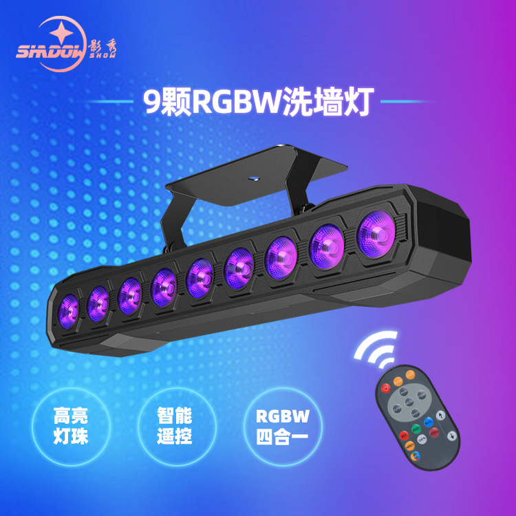 • 9pcs RGBW 4-in-1 벽 세탁기(리모컨 포함)