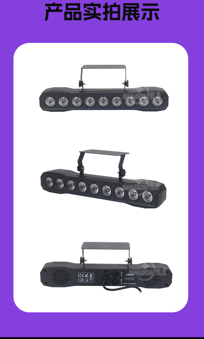 4 대 1 벽 세척 램프 긴 프로젝션 램프 실내 염색 배경 램프 크리스마스 파티 램프 무대 분위기 램프 9 개