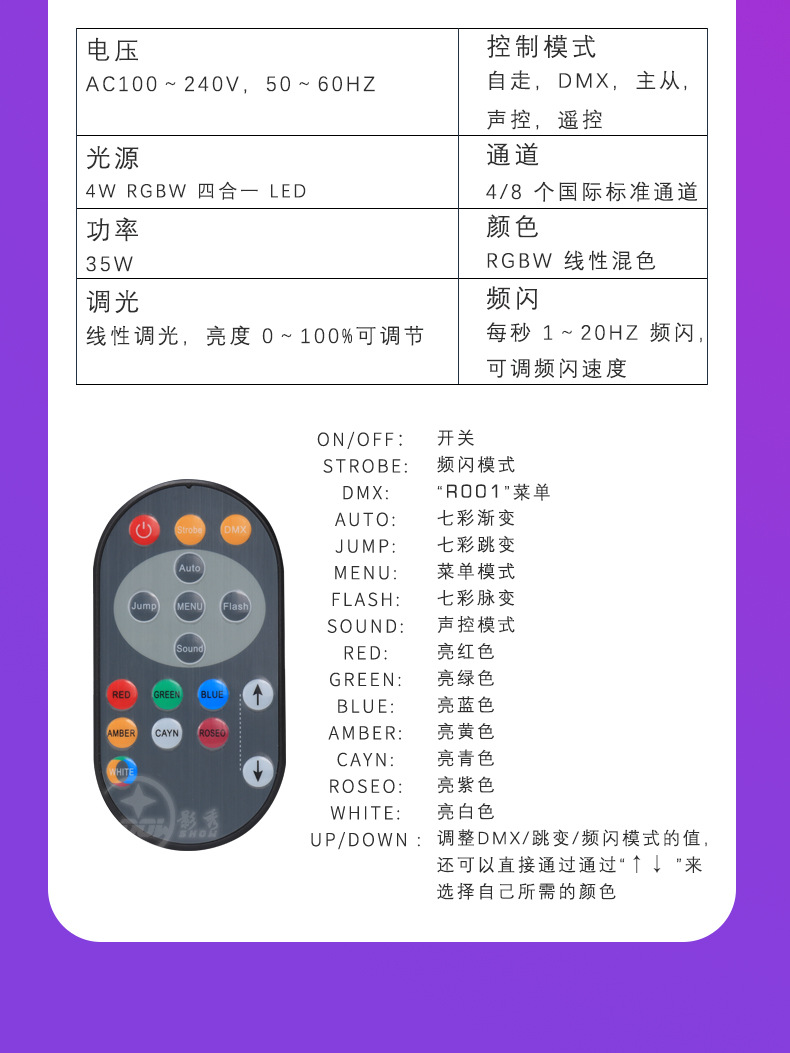 4 대 1 벽 세척 램프 긴 프로젝션 램프 실내 염색 배경 램프 크리스마스 파티 램프 무대 분위기 램프 9 개스토어 가기
