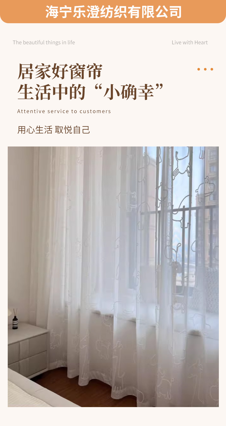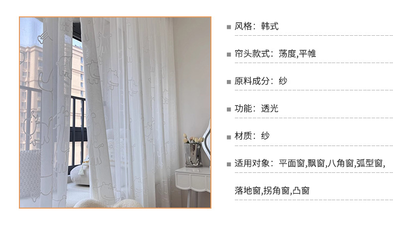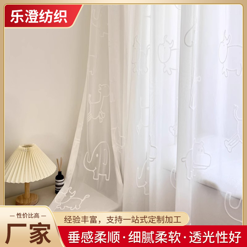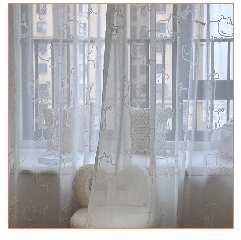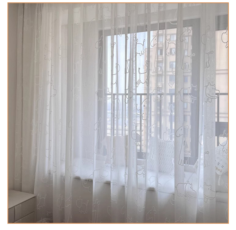 새로운 동물 왕국 어린이 방 창 화면 흰색 만화 커튼 침실 베이 창 3D 3 차원 양각 자수 거즈 커튼스토어 가기