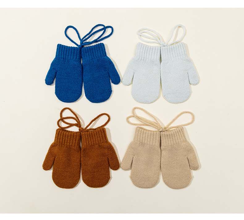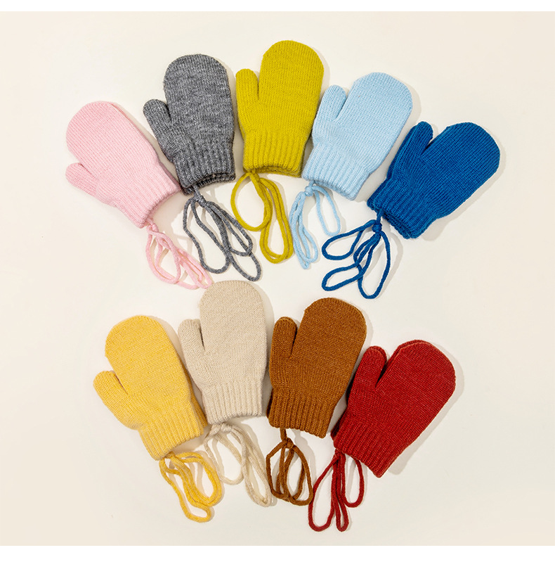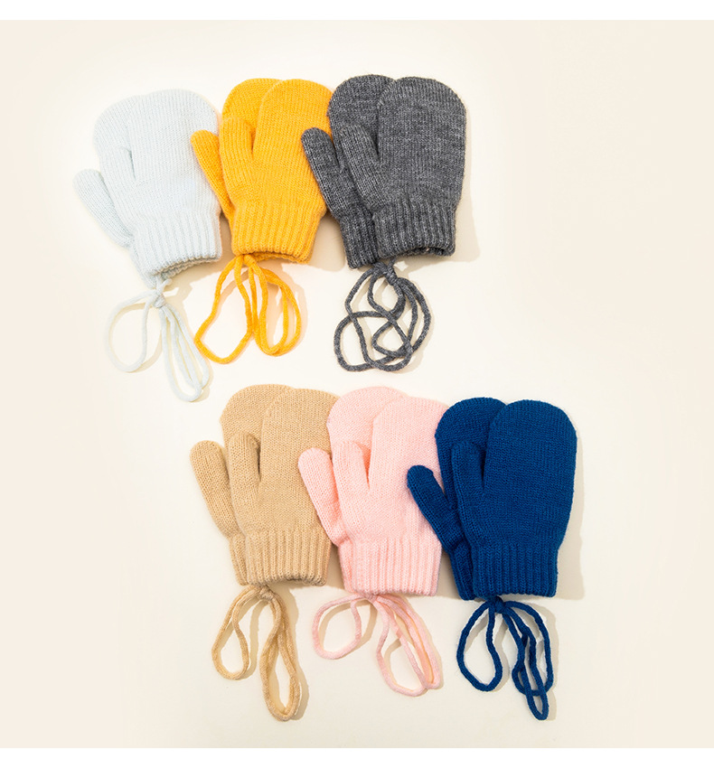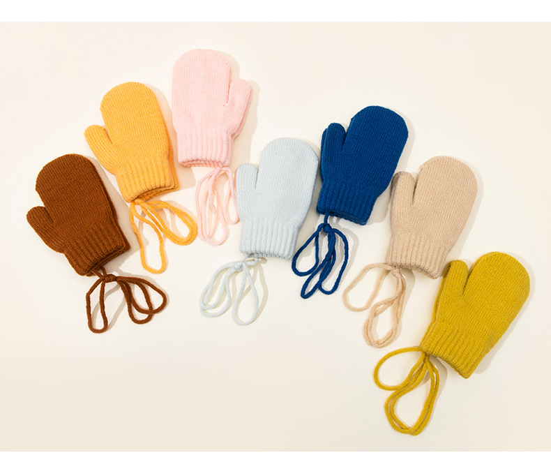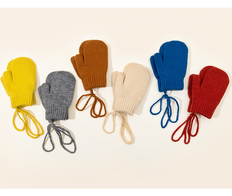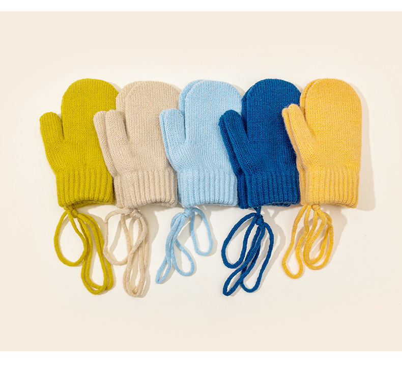 캔디 컬러 겨울 어린이 장갑 가을 겨울용 벨벳 안감 두꺼운 어린이 목걸이형 장갑 두꺼운 보온 니트 장갑