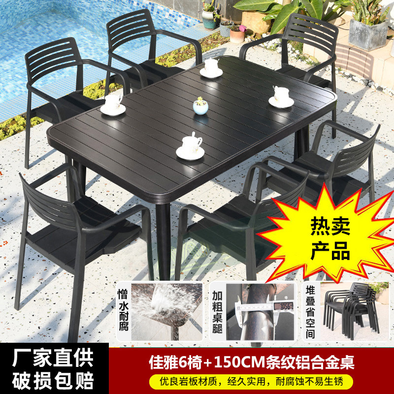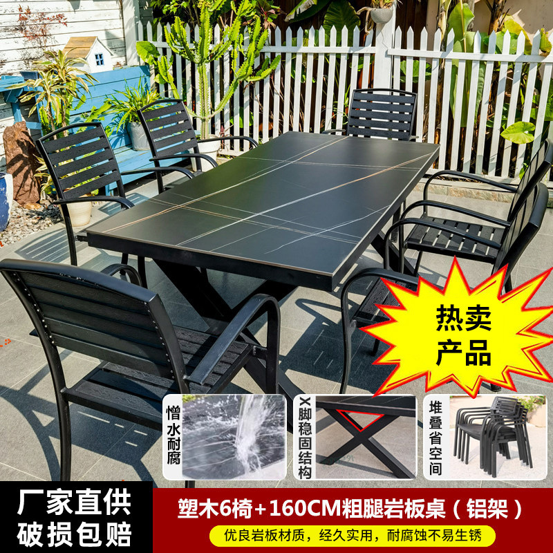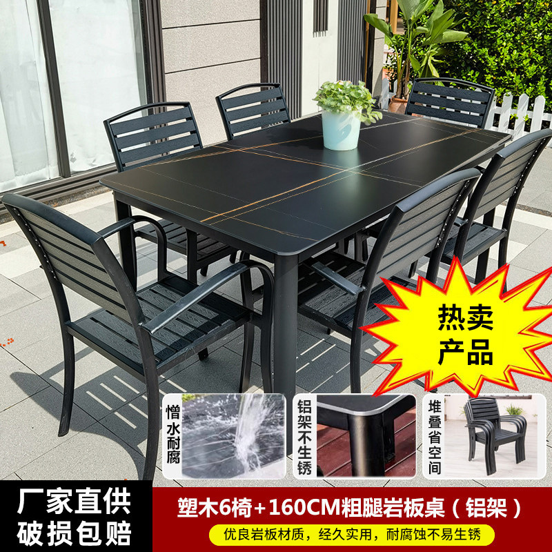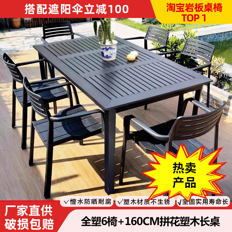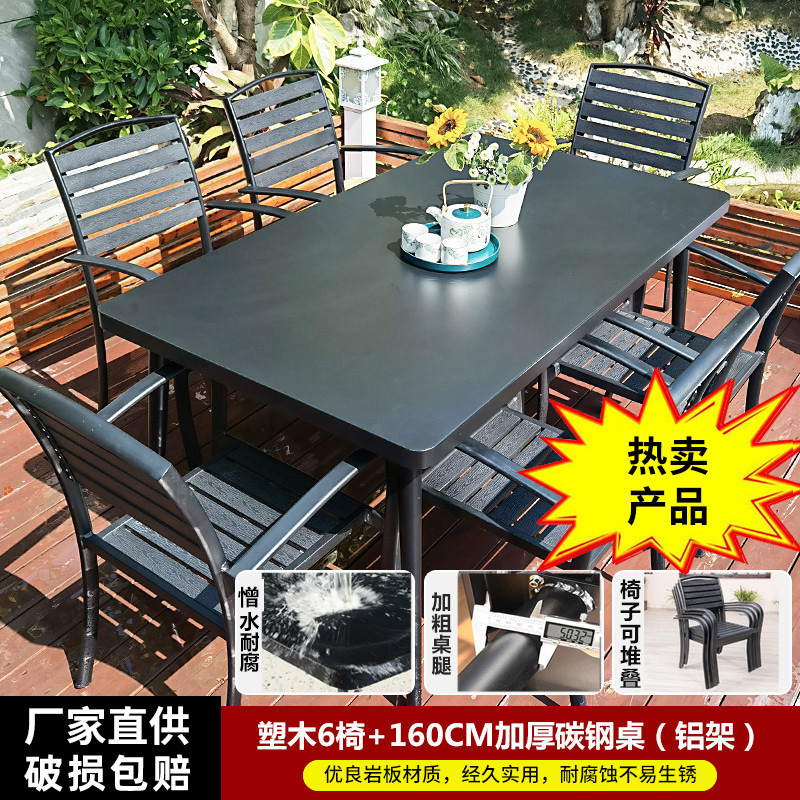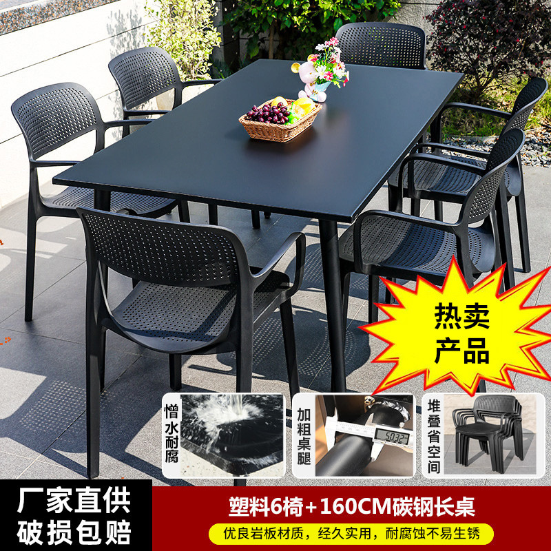 • 플라스틱 목재 의자 6개_160_90CM 두꺼운 탄소강 긴 테이블